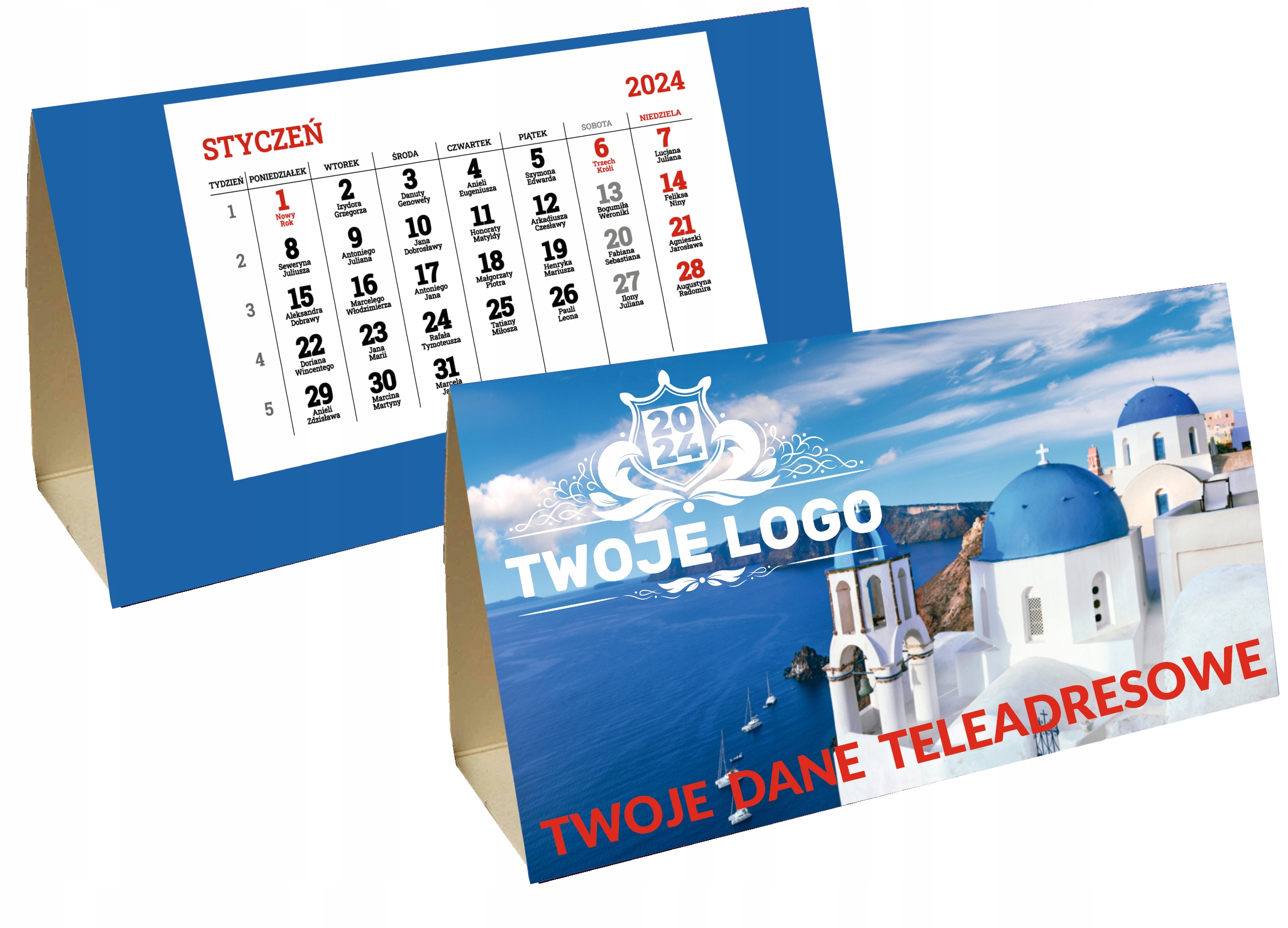 Основа календаря загибается снизу, а затем приклеивается. Следов склейки нет. Календари отправляются вам уже в сложенном виде, достаточно загнуть их основание снизу в месте сгиба и положить календарь на стол.