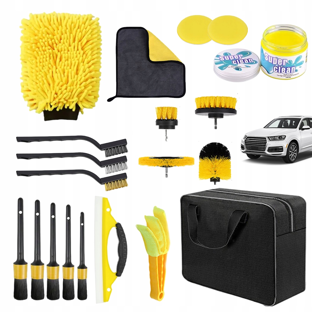 Улучшенные чистящие перчатки из микрофибры и ткань для очистки микрофибры, чрезвычайно поглощающие и не оставлять волокна. 3 проволочные щетки с различными типами материалов, идеально подходящие для очистки постоянной ржавчины и остатков. Гель для очистки автомобиля, идеально подходит для очистки углов и рогов.