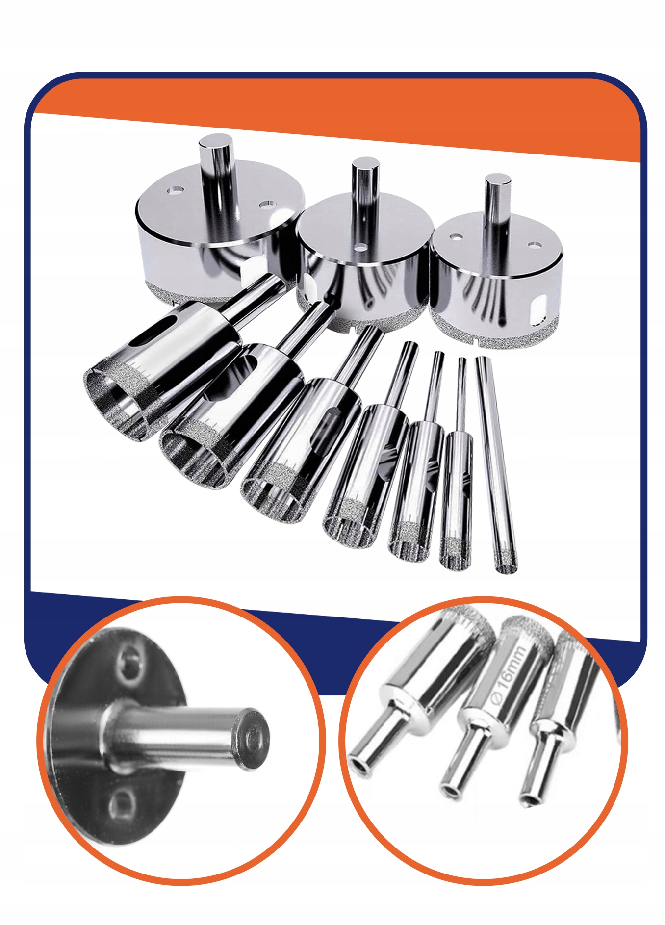 ➡ Высокий качественный набор из 10 алмазных отверстий является идеальным инструментом для точного бурения отверстий в твердых материалах Такие, как керамика, стекло, керамика, плитка или мрамор.