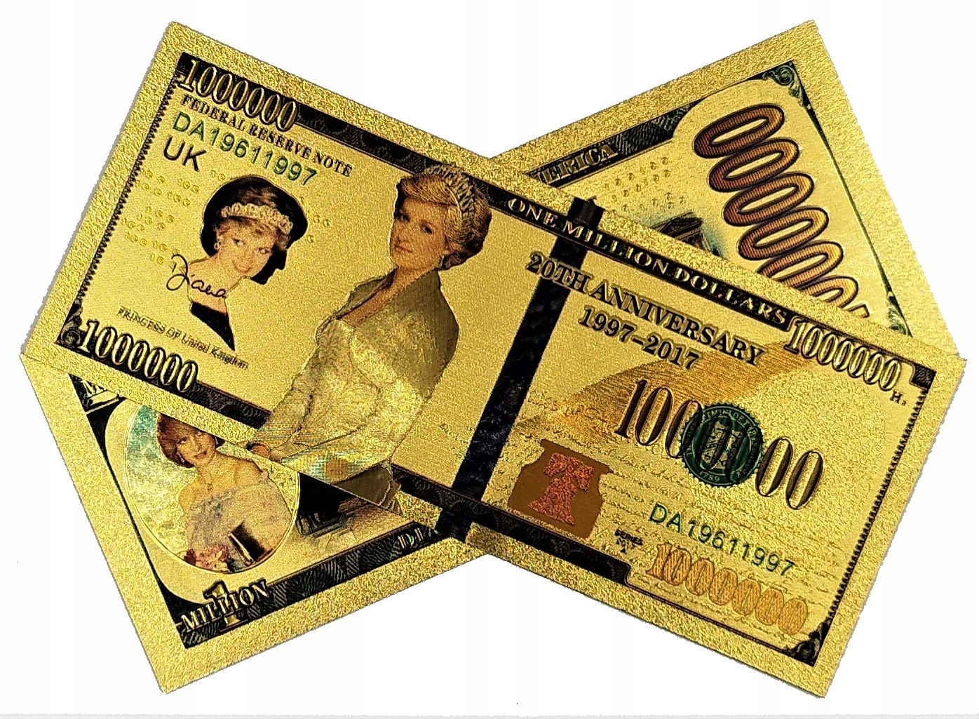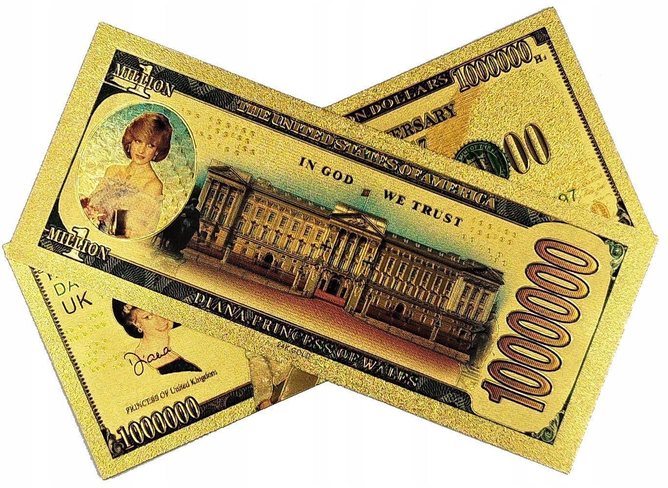 ДІАНА СПЕНСЕР Красива позолочена банкнота номіналом 1000 000 доларів УНІКАЛЬНА КОЛЕКЦІЯ