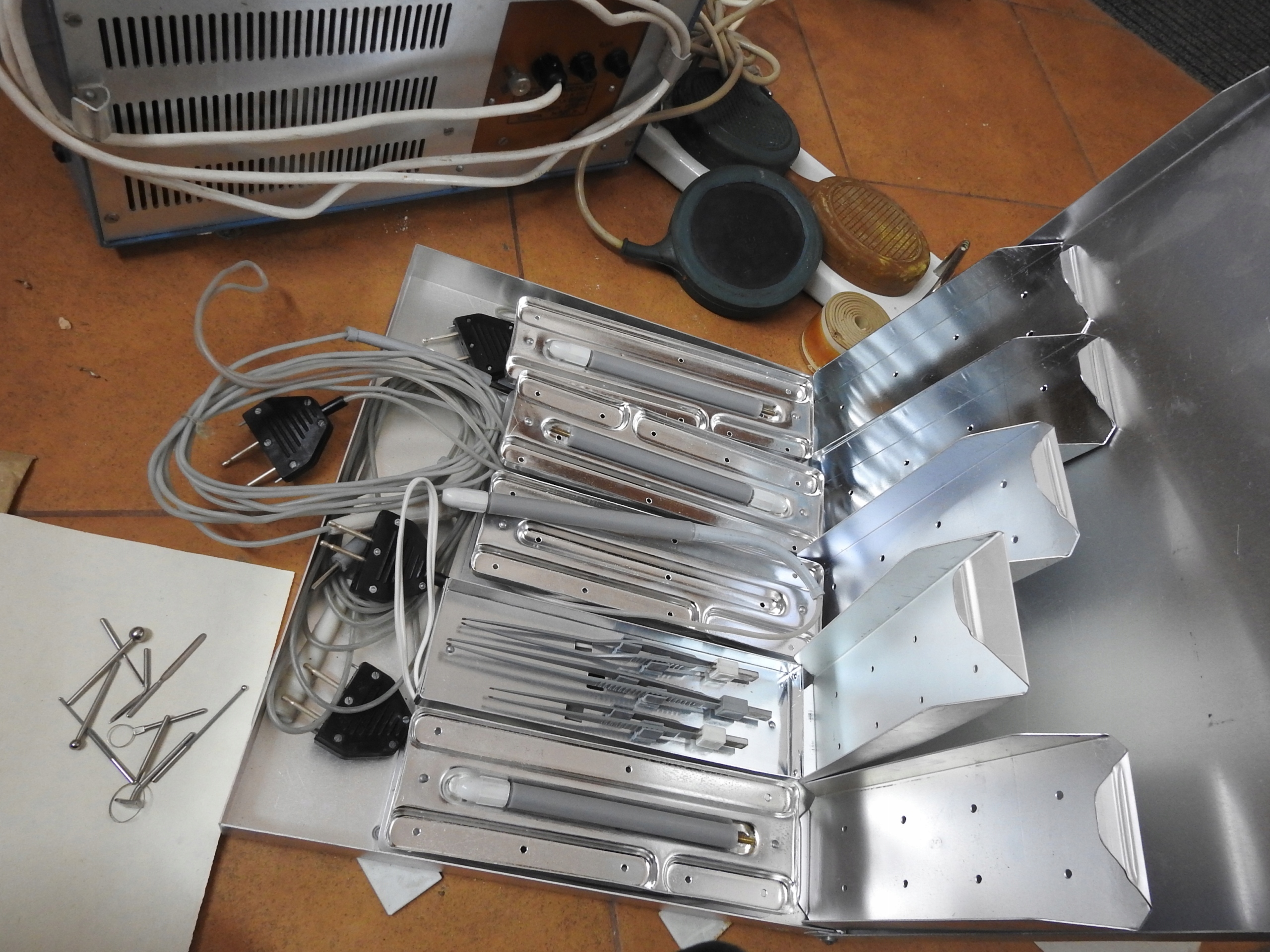 Также имеется металлический ящик для транспортировки. Коробка сильно поцарапана. Не закрывается должным образом, так как губка-наполнитель отсутствует и со временем развалилась.