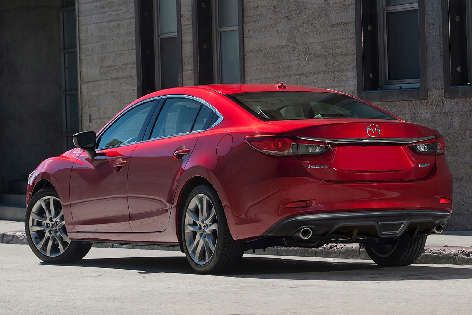 задний бампер диффузор, предназначенный для модели Mazda 6 III (GJ) 2014-2018 (в версии седана перед подтяжкой лица).