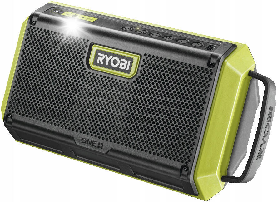 Bluetooth-динамик rbt18-0 ryobi имеет два динамика с 10 Вт, благодаря которого испускаемый звук чист, независимо от выбранного тома. Благодаря технологии Bluetooth оператор может управлять динамиком на расстоянии до 25 м. Встроенная басовая трубка допускает излучение низких тонов, что обогащает музыку. Используя динамик, можно заряжать устройства на USB благодаря встроенному порту. Светодиоды контролируют работу динамика и позволяют управлять качеством соединения Bluetooth.
