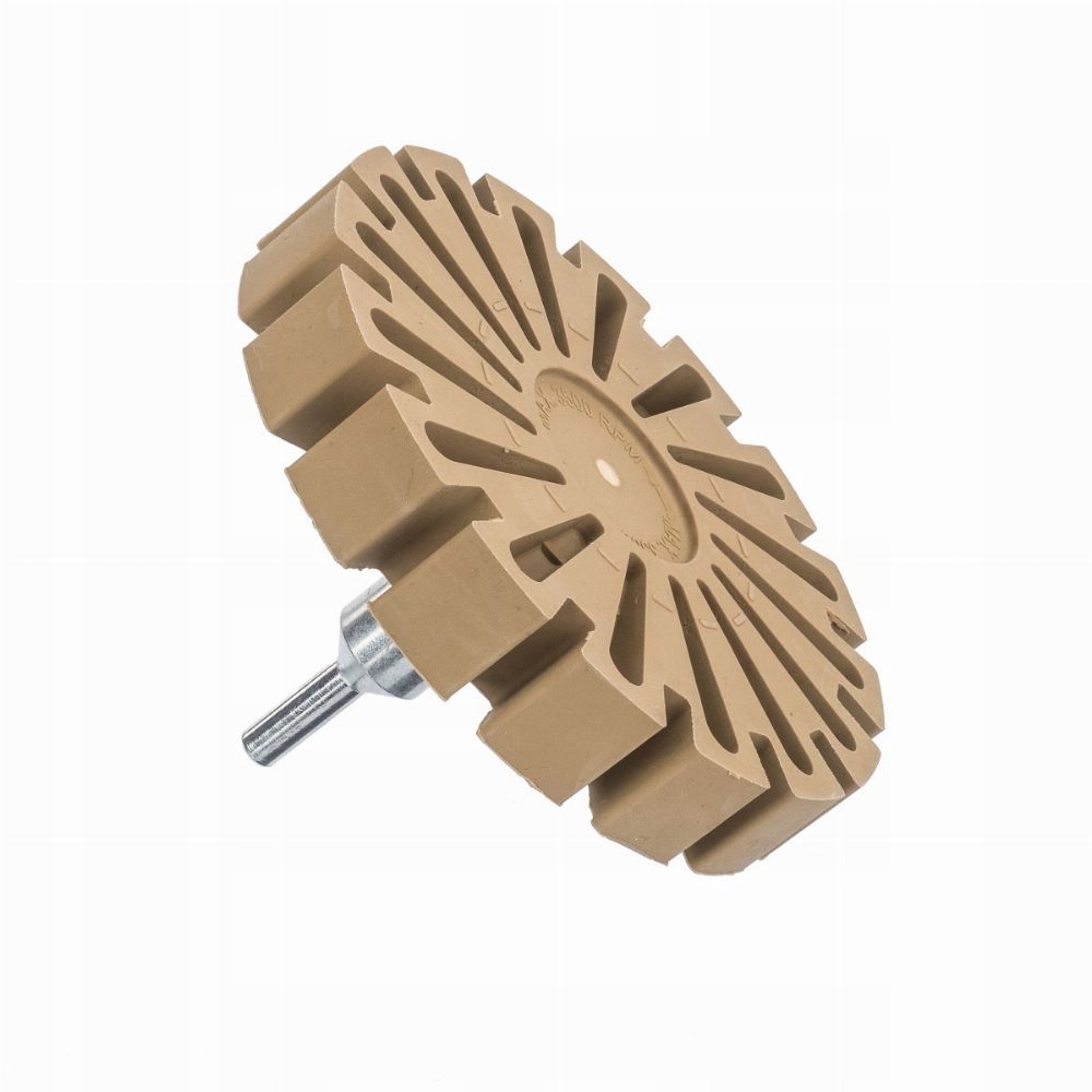 Диск/диск резиновый предназначен для удаления остатков скотча и других загрязнений с приклеенных грузов с обода. Изделие поставляется с адаптером, позволяющим быстро подключить диск к медленноскоростному устройству. Диск гарантирует быструю и безопасную очистку и подготовку обода для установки нового груза. Особая листовидная структура диска увеличивает силу давления. Благодаря этому мы быстрее удалим грязь. Правильно подобранная смесь качественных резин, из которой изготовлен диск, не повреждает поверхность, не царапает и не оставляет следов на очищаемых поверхностях. Использование диска в процессе чистки дисков позволяет быстро удалить стойкие загрязнения. Максимальная скорость вращения диска — 3500 оборотов в минуту.