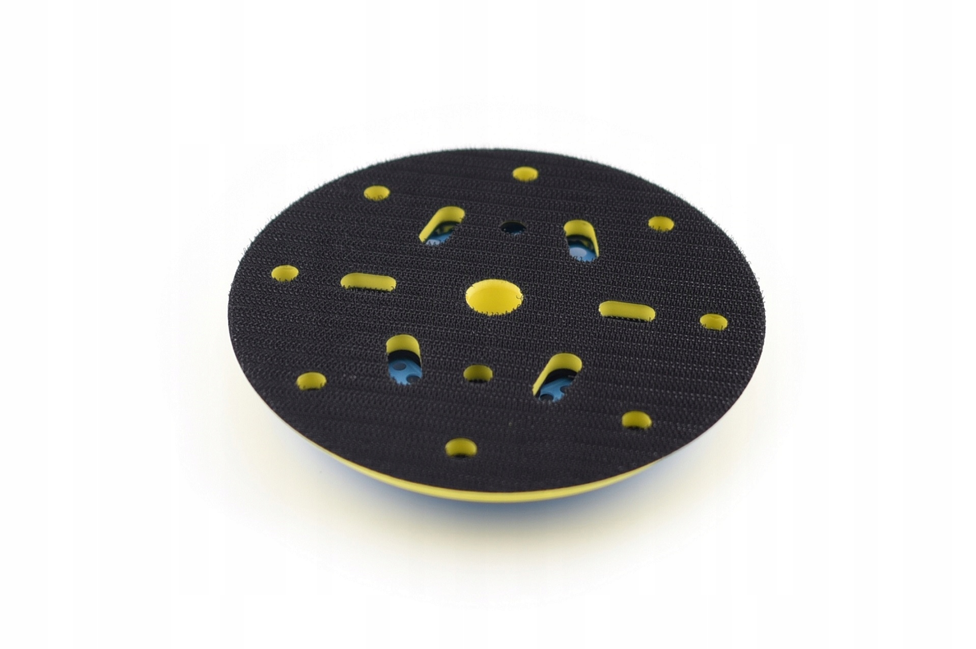 Преимуществом данной упорной пластины являются очень хорошо продуманные вентиляционные каналы с большой площадью поперечного сечения. Они выполнены радиально в гибком полиуретановом слое, непосредственно под так называемым клеевым слоем. Липучка. Они соединены с большими вентиляционными отверстиями и, улавливая воздух при вращении пластины, эффективно охлаждают полировальные подушечки со стороны липучки, предохраняя их от распада. Огромным преимуществом этого решения является также отделение колодки от тепла, выделяемого подшипниками эксцентрикового механизма.