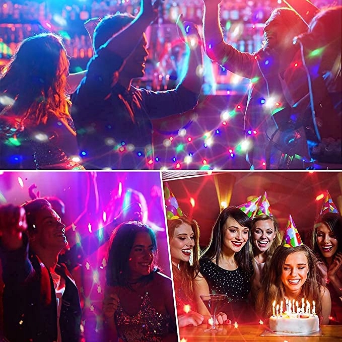 -Многофункциональность: этот световой сценический светильник для дискотеки, активируемый звуком, поддерживает дистанционное управление Bluetooth и воспроизводит музыку. Встроенный аккумулятор, нет необходимости подключать провода, вы также можете использовать пульт дистанционного управления для регулировки громкости песни, яркости, выключателя света, громкости звука, цветового режима, выдержки и т. д.
