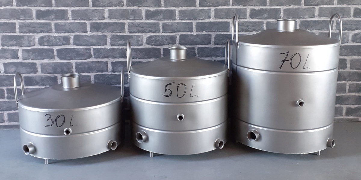 Мы предлагаем бойлер из нержавеющей стали объемом 30 или 50 литров, также доступен бойлер на 70 литров. .
