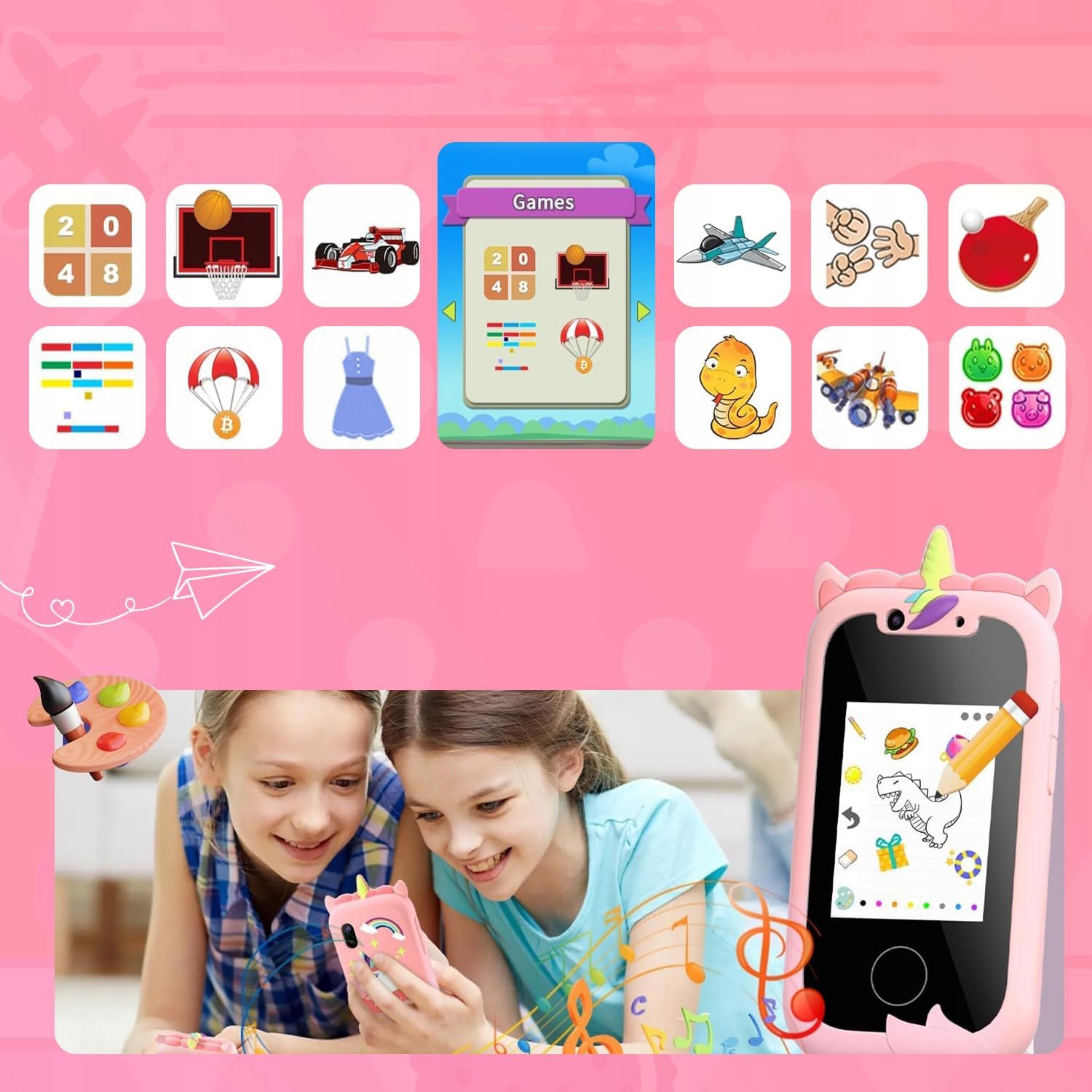 🩷 Смартфон с сенсорным экраном для детей - 2,4 -размышленный смартфон для детей предлагает множество развлечений и образовательных функций - включая HD -фотографии и фильмы, сладкие наклейки, калькулятор, ABC, истории, рисунок, монитор привычек, музыку и истории и т. Д. Эгандшат ежедневные действия. Благодаря 28 очаровательным наклейкам дети могут персонализировать фотографии и видео для поддержки творчества и самих себя. Оснащенная картой памяти 512 МБ, вы можете сохранить тысячи фотографий. Детская камера на смартфоне. Надежный компаньон для детей в путешествиях. Этот игрушечный телефон также может помочь детям изучить письма ABC и национальное архитектурное представление, определить памятники и развивать дух исследователя. Смартфон для детей оснащен 12 -ступенчатой тревогой, которая помогает детям развивать здоровые привычки повседневной жизни, осведомленность о времени и независимости. Телефонная игрушка для детей оснащена силиконовым корпусом высокого качества, который полностью охватывает телефон, чтобы предотвратить ущерб, вызванный случайным падением. На задней части телефона есть выпуклая поверхность со сладким единорогом. Если вы внимательно посмотрите, вы также найдете маленьких звезд! Наслаждайтесь большим количеством возможностей тратить свободное время, не подвергая детей потенциальным сетевым угрозам, в то время как удерживайте детей подальше от телефона и дистанционного управления