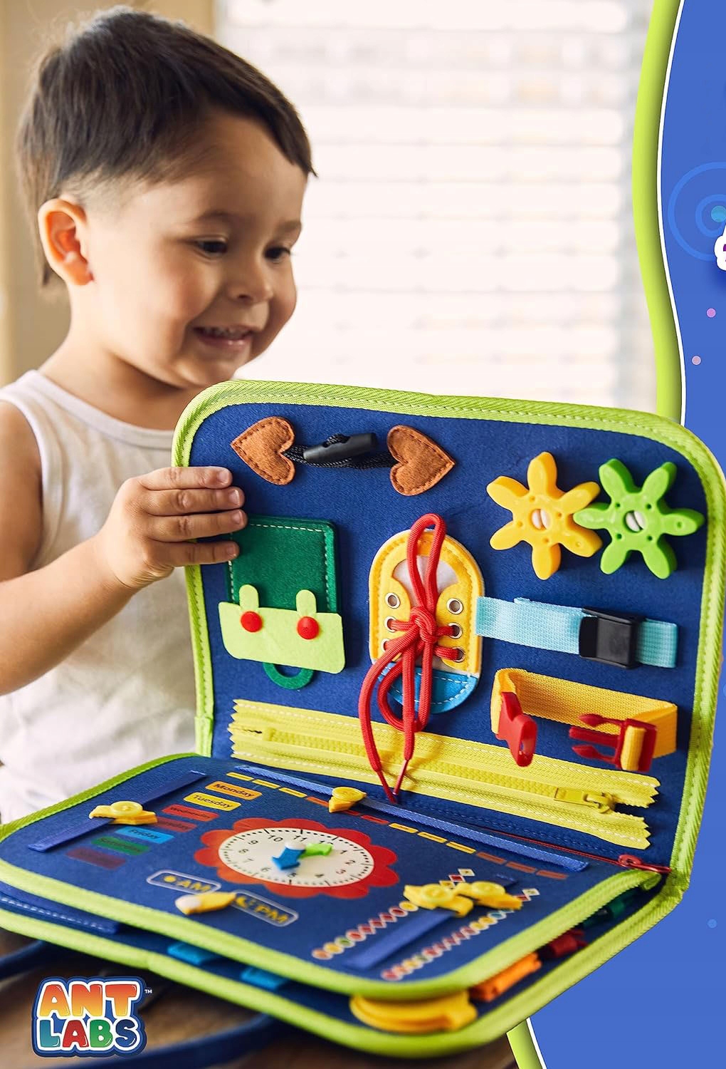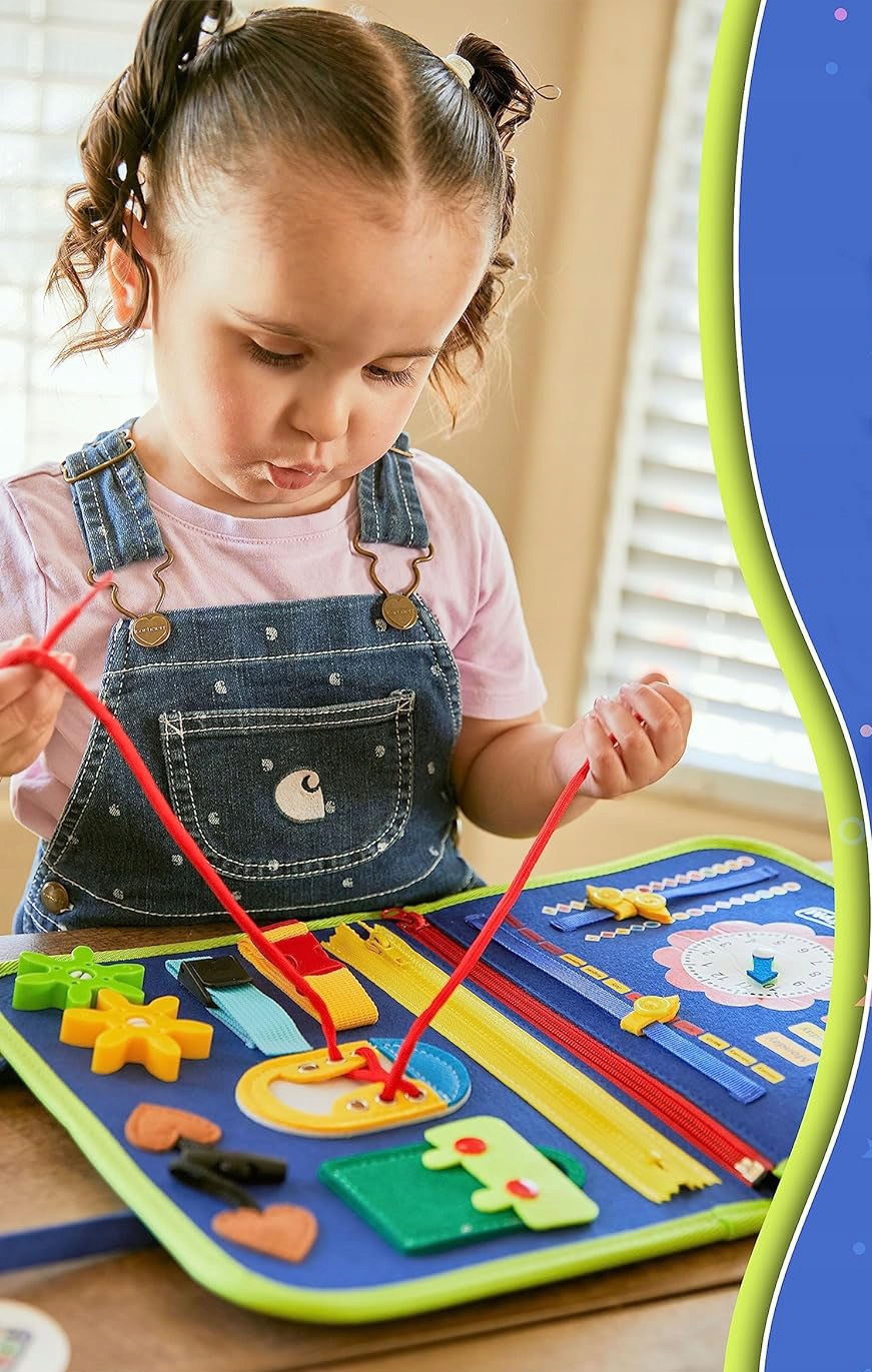 - ✅ ПОДДЕРЖИВАЕТ РАЗВИТИЕ РЕБЕНКА - доска развивает познавательные способности ребенка, выполняя действия, которые будут полезны, когда ребенок станет старше. Примером может быть завязывание обуви или использование зажимов в рюкзаке