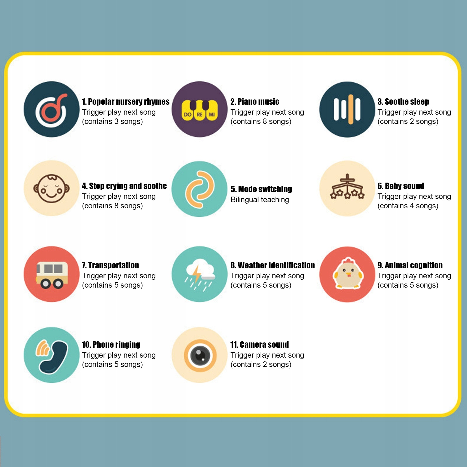 3. Функциональные мульти: 12 кнопок имеют 12 различных функций, согласно когнитивным потребностям ребенка, тщательно разработали различные знания о раннем образовании.