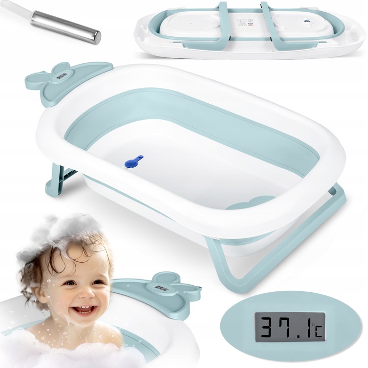 ТУРИСТИЧЕСКАЯ ДЕТСКАЯ ВАННОЧКА С ЖК-ТЕРМОМЕТРОМ RK-282 БЕЛЫЙ И СИНИЙ