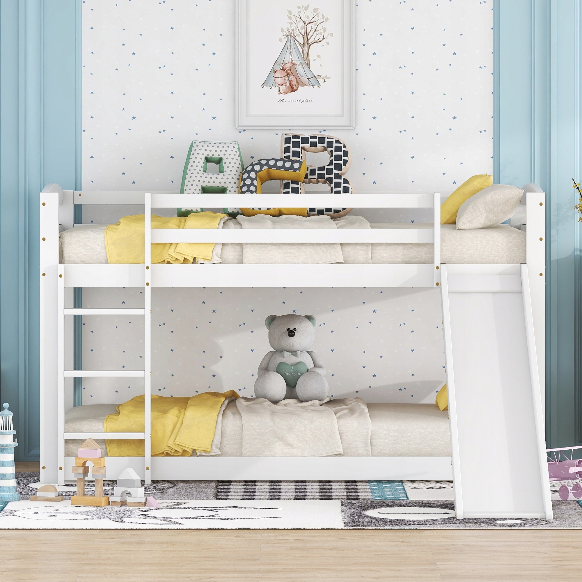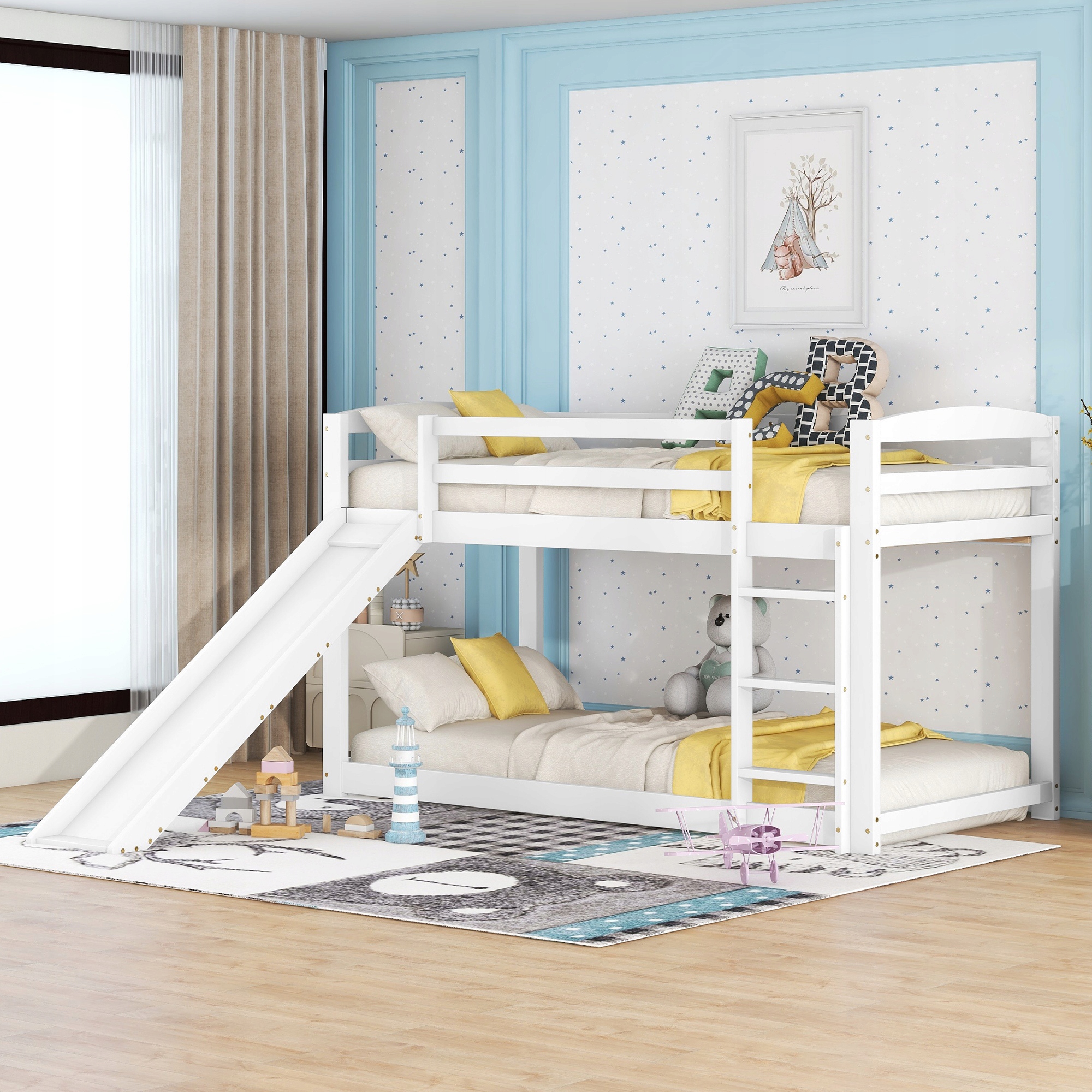 двухъярусная кровать для детей и подростков, детская кровать со слайдной, сплошной деревянной рамой, простой в установке, 90x200см, белый