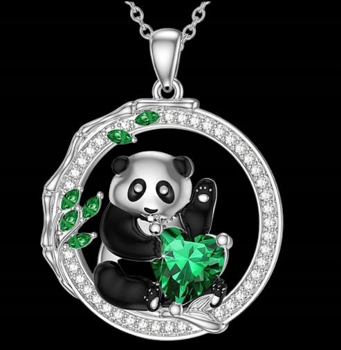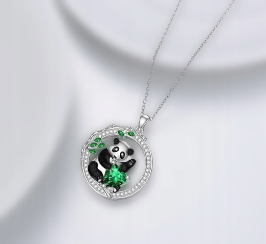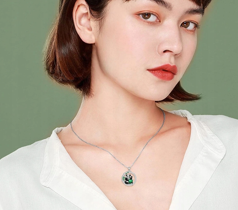 Детское ожерелье Серебряное плюшевое мишка панда стразы сердца