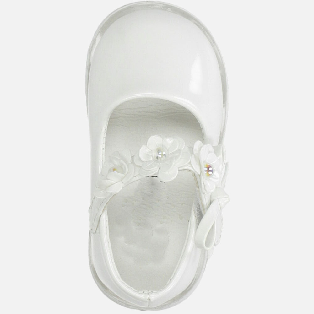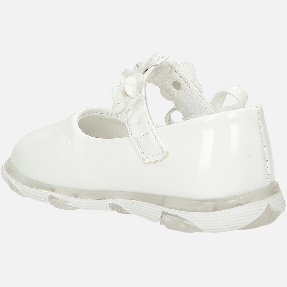 Белые балерины, лакированные с луком, прикрепленным к липучке A-9