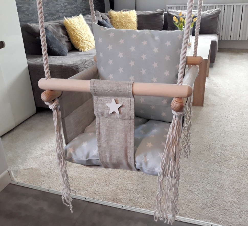 Наши качели – красивый предмет мебели для детской комнаты, который создаст сказочную атмосферу и сделает детство незабываемым приключением. Отличное развлечение для самых маленьких детей (около 7-8 месяцев).