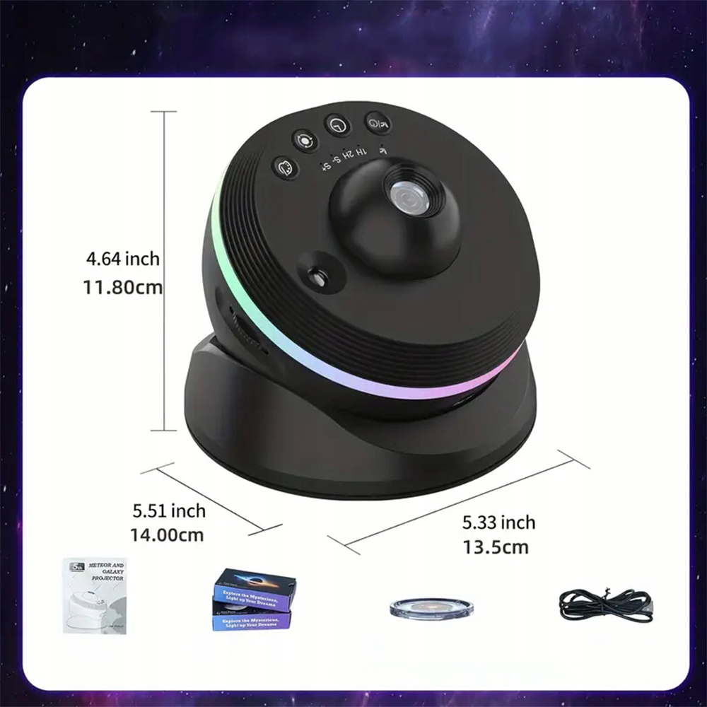 🎁【 Galaxy HD -проектор и 360 °】 : недавно улучшенная проекция HD. Поверните верхнее винтовое кольцо, чтобы отрегулировать фокус на расстояние проекции, которое обеспечит четкое изображение. Стадия вращения 360 ° может отображаться на потолке, стене и поле.