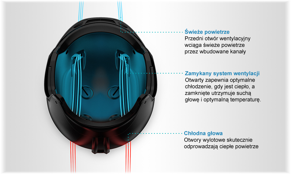 Uvex уделяет большое внимание оптимальной вентиляции: продуманные вентиляционные каналы втягивают свежий воздух и отводят теплый воздух.