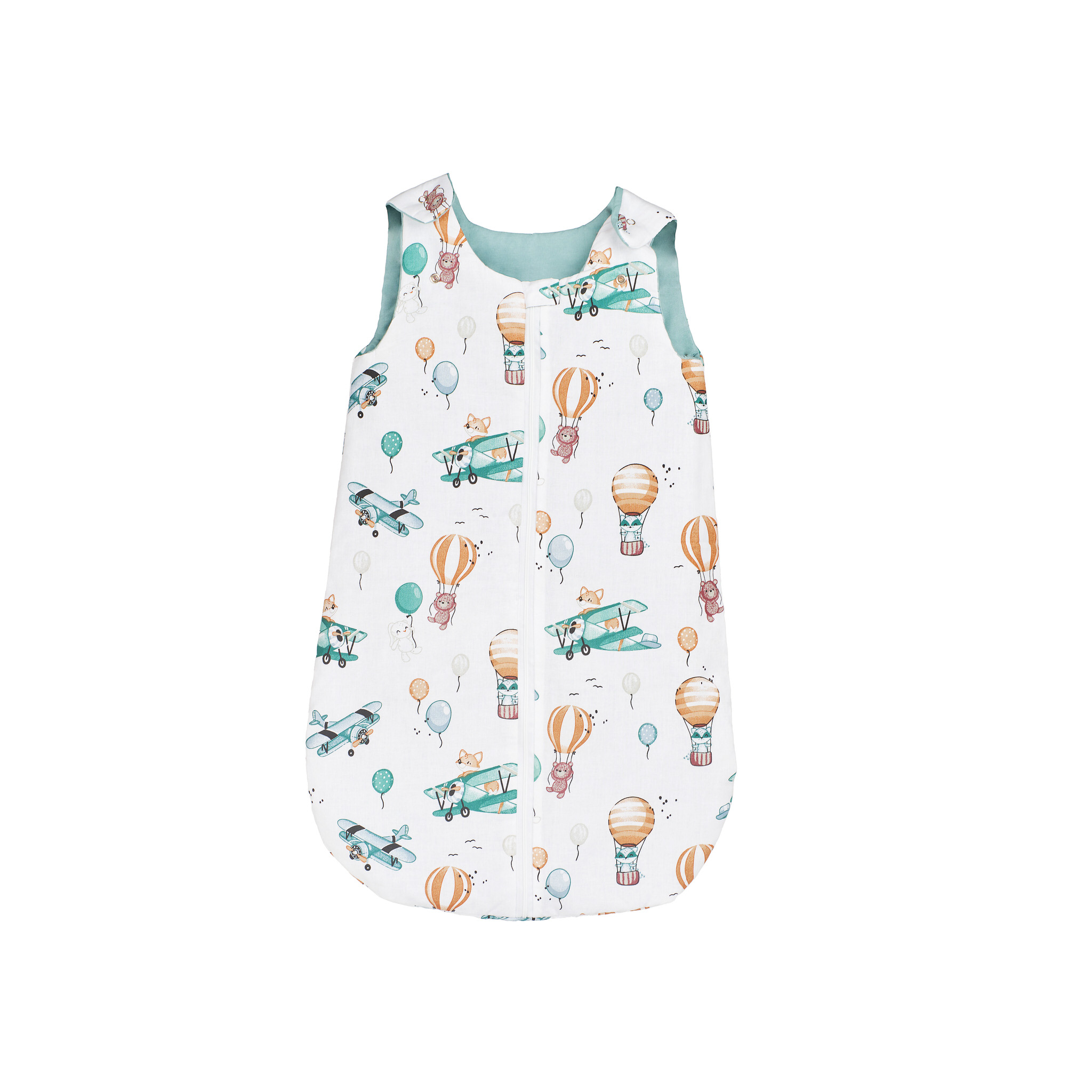 Детский спальный мешок из 100% дышащего хлопка на внешней поверхности, с мягким стеганым наполнителем обеспечивает соответствующий комфорт и температуру во время сна ребенка и минимизирует риск перегрева.