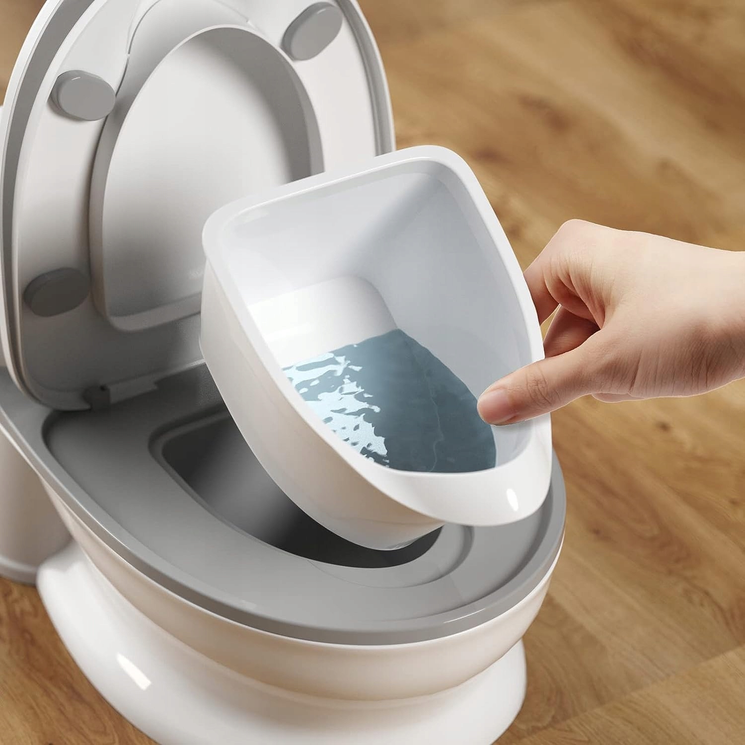 Туалет для приучения детей к горшку со звуком смыва — отличный инструмент, помогающий детям самостоятельно пользоваться туалетом. Этот удобный горшок, специально разработанный для детей от 18 месяцев и старше с максимальным весом 50 фунтов, поощряет и помогает малышам освоить личную гигиену.