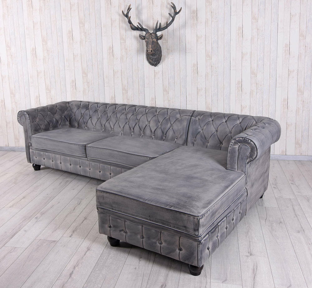 В этой модели угловой диван использовался для покрытия материала, который является велюром. Структура и мебельные ноги были сделаны из высококачественной древесины. В целом высотой 78 см, шириной 234 см и глубиной 60 см. Угловой диван велюр серый, а ноги в черном. Нижняя часть сторон и задняя часть мебели стегаются, что выполняет функцию украшения. Сам серый угловой диван хранится в винтажном стиле. Благодаря этому это идеально подходит как для современного, так и немного более спокойного и классического аранжировка. Его можно использовать не только в гостиной или спальне, но и в коридоре. Эта мебель поддерживается только в правильной части, а выступающая угловая часть полностью лишена поддержки. По бокам отделки спинки, которую они имеют в классическом стиле, который чаще всего используется в этом типе мебели.