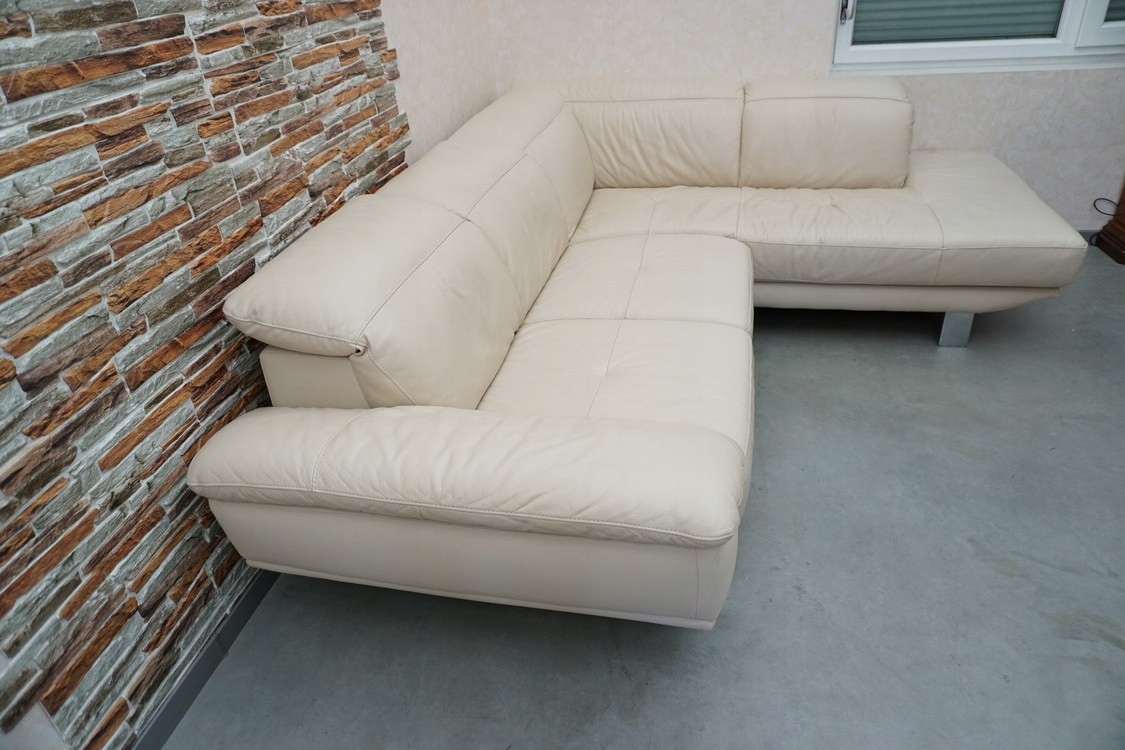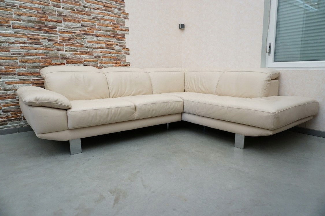 КОЖА УГЛОВОЙ ДИВАН СОВРЕМЕННЫЙ СТИЛЬ, СВЕТЛЫЙ БЕЛЫЙ