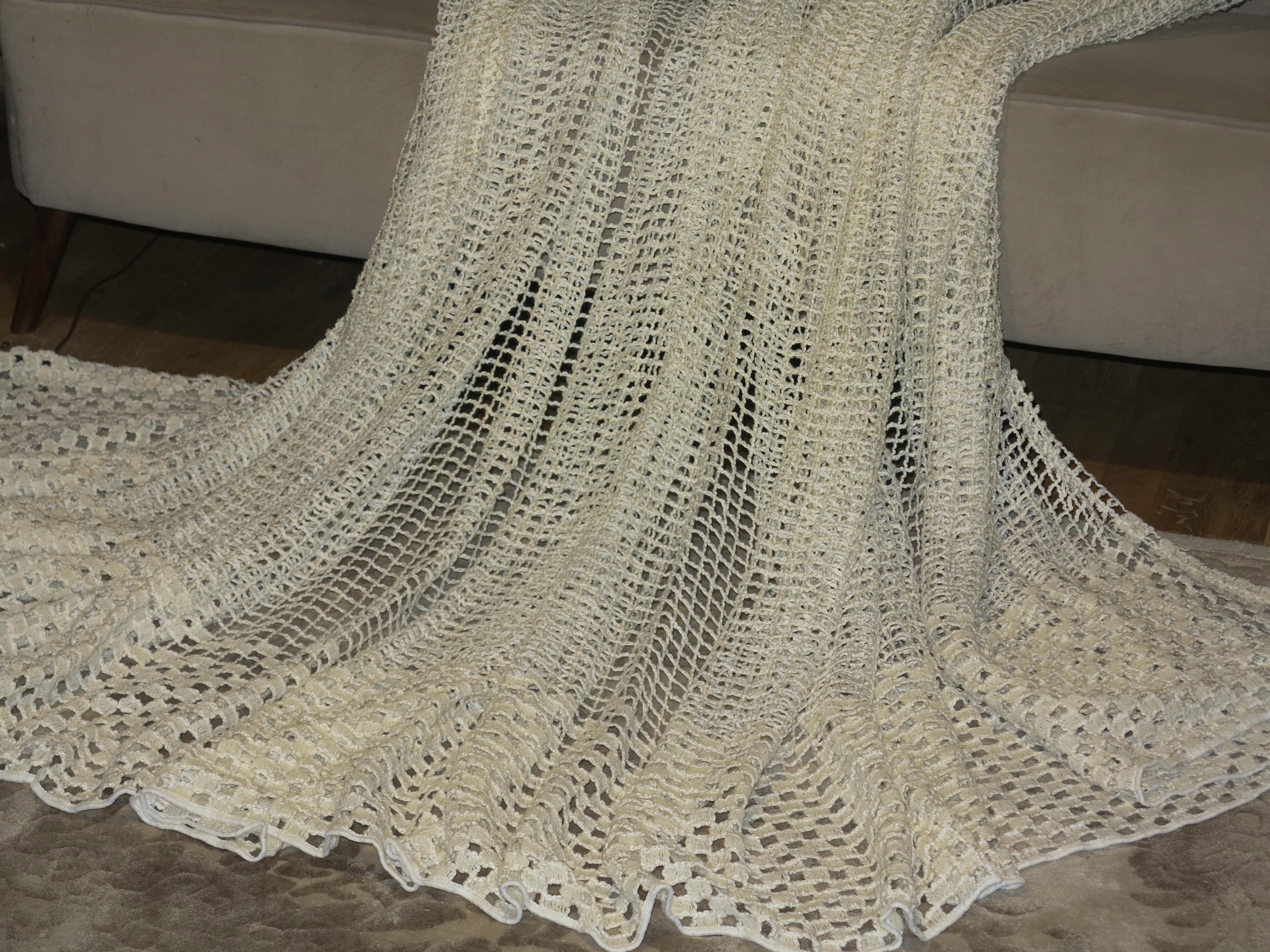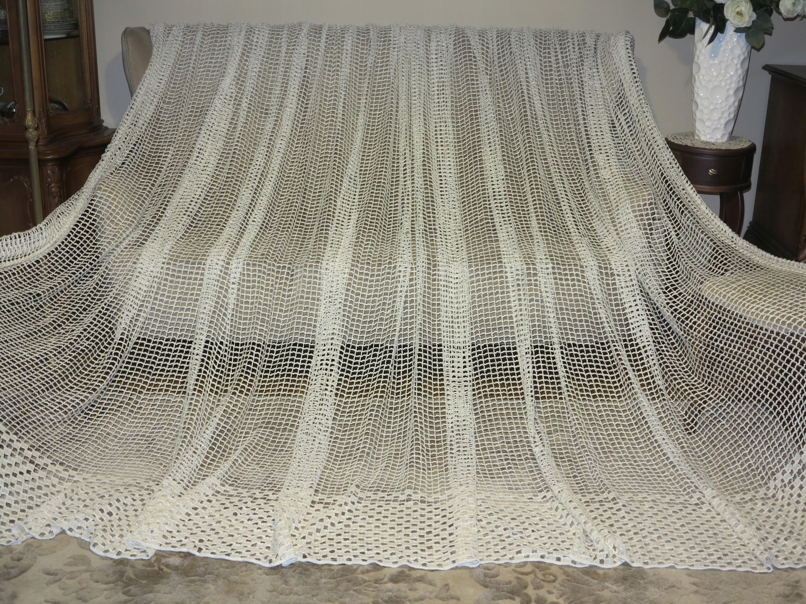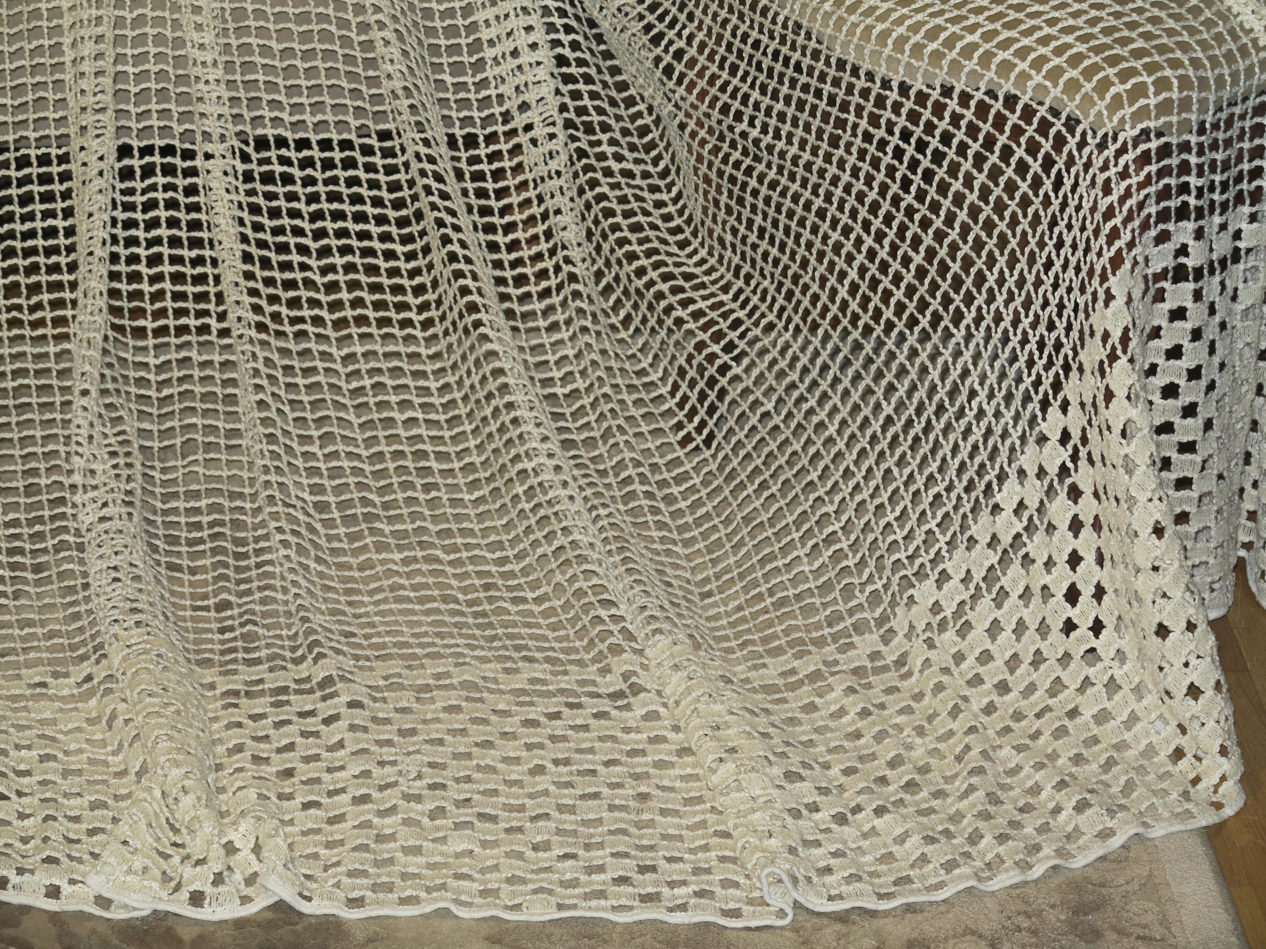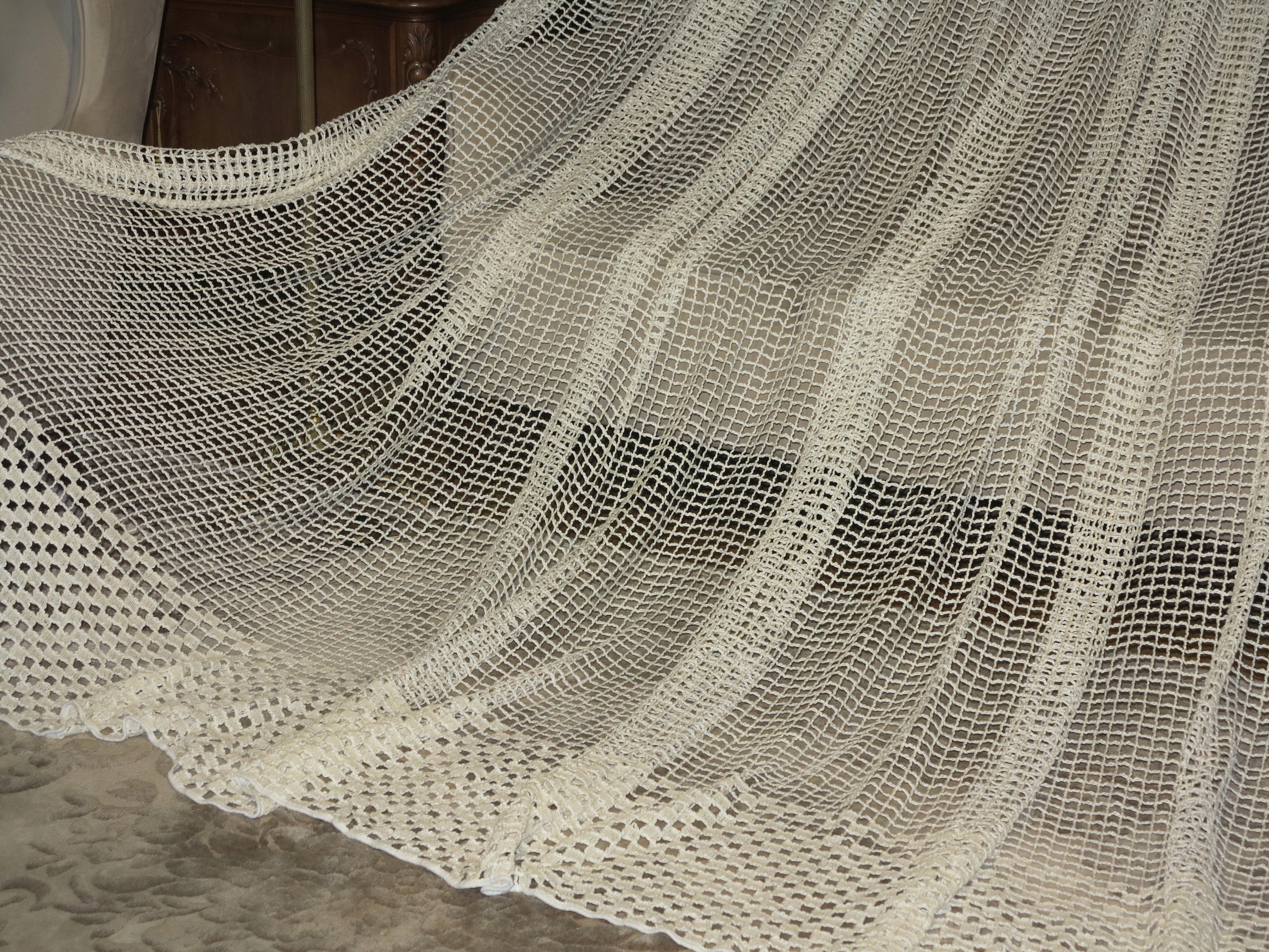 В ПОМЕСТЬЕ - ПОТРЯСАЮЩУЮ ШТОРУ, ПОЛНОСТЬЮ ИЗ ВЫСОКОКАЧЕСТВЕННОЙ НЕМЕЦКОЙ ТЯЖЕЛОЙ, ПЛОТНОЙ, струящейся и идеально ниспадающей сеточки, С КРУПНЫМИ СЕТОЧКАМИ. ГЛАЗА ВНУТРИ ТОЛСТОЙ НИТЬЮ, КАК БАКЛА. ЦВЕТ НИТКИ - ЭКРЮ