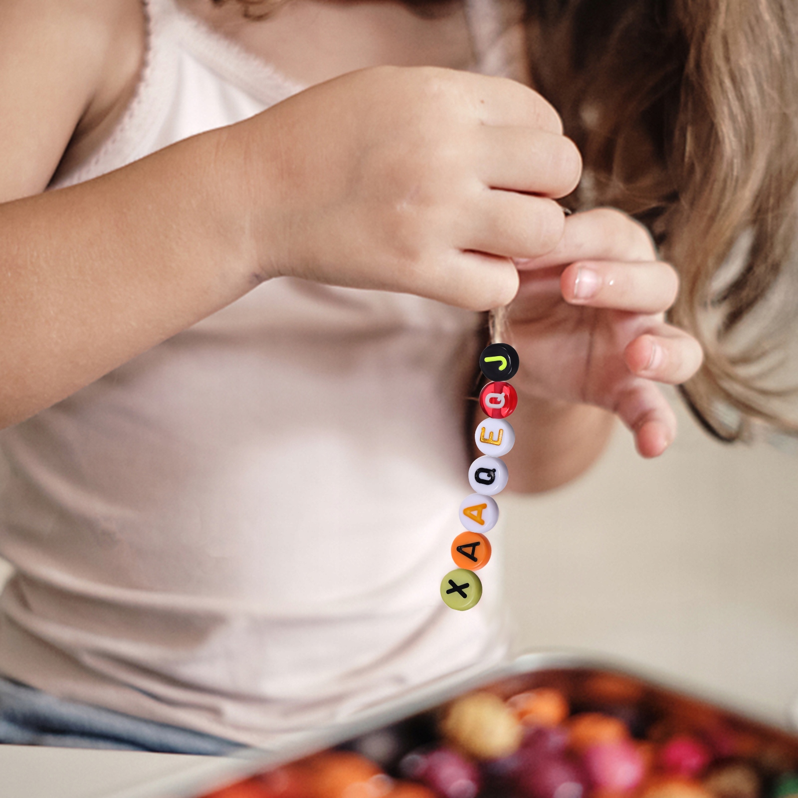 ✅ Различные комбинации: С помощью этих разноцветных бусин с алфавитом вы можете написать любое слово или имя для создания осмысленных поделок.