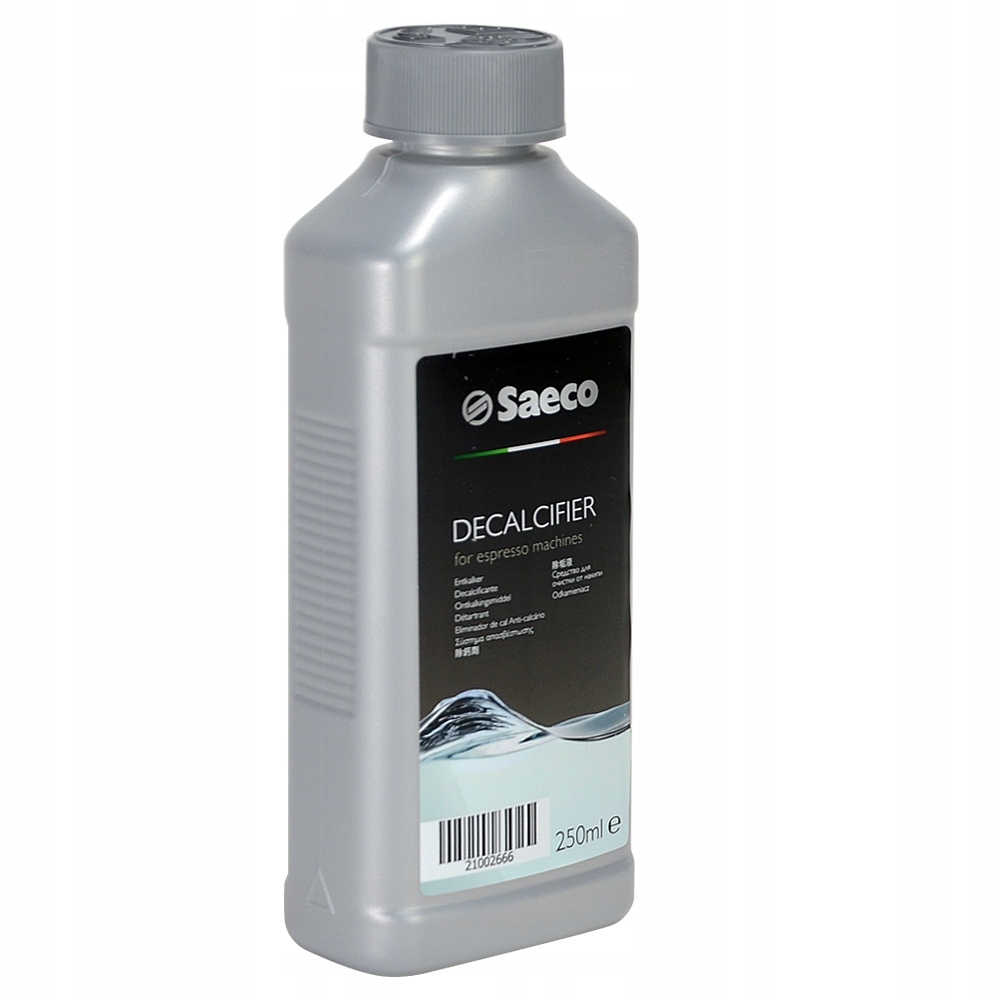 Одна дизайнерская бутылка Saeco (250 мл) достаточно для одного цикла. Решение должно быть готово в соответствии с инструкциями, заливая его в пустой резервуар для воды, а затем запустить программу снижения. Благодаря этому эспрессо -машина тщательно очищена от камня и готова к дальнейшей работе.
