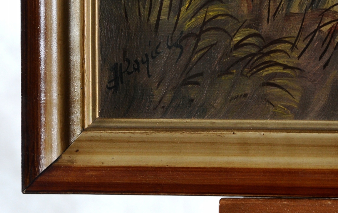 J. Ragiel "Пейзаж с деревянной хижиной" Красивая нефтяная картина !!!