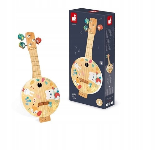 Банджо имеет удобный размер и красивые пастельные тона - коробка расписана типичными для коллекции Pure животными: мишкой, лисичкой и зайчиком, а ручки, регулирующие натяжение струн, имеют форму птиц. .