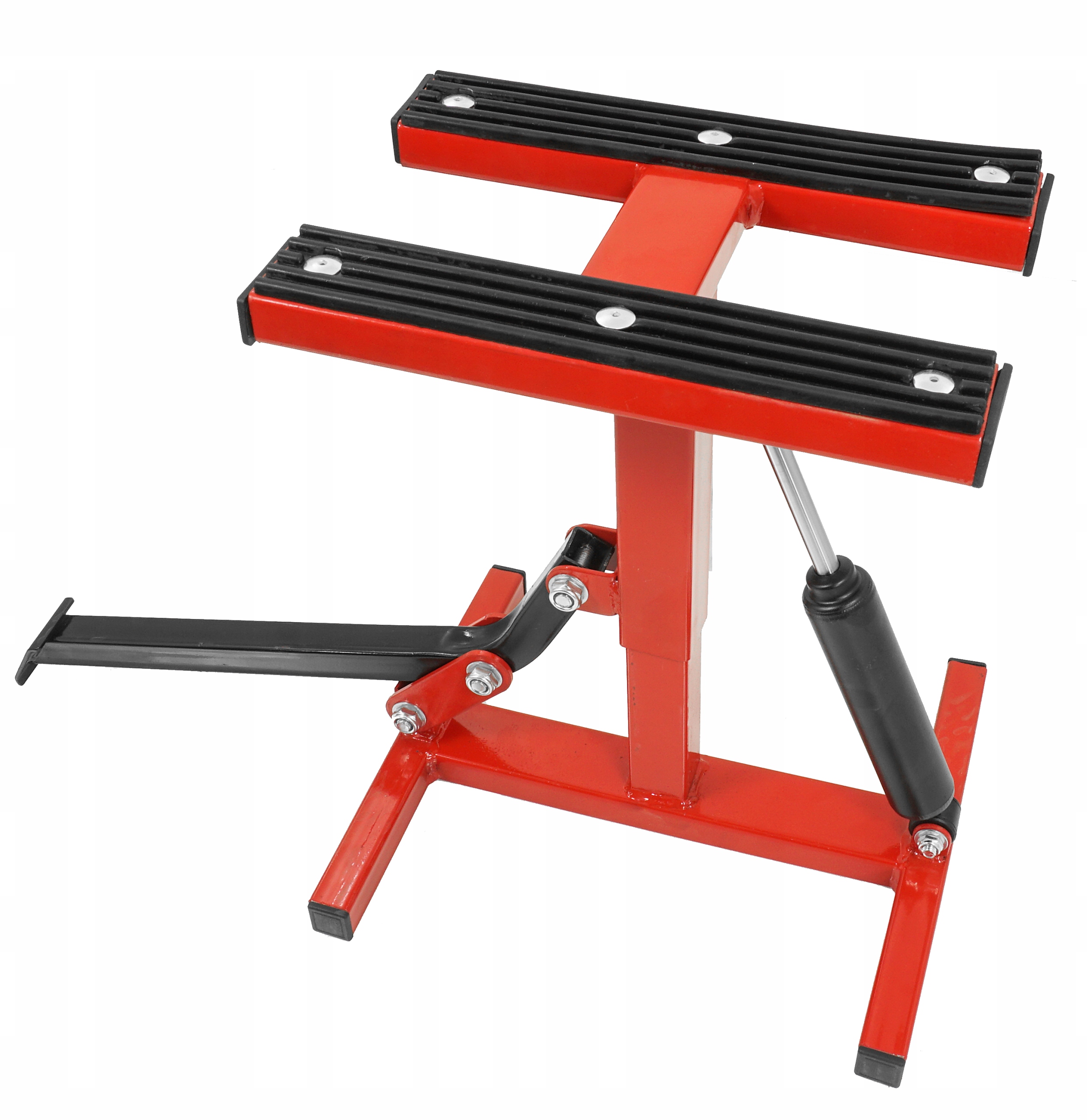 Универсальный подъемник, предназначенный для кроссовых, эндуро и триальных мотоциклов. Простой в использовании, легкий и портативный, он позволит легко и безопасно провести ремонт, а также значительно облегчит мытье мотоцикла. Качественная сталь, из которой изготовлена конструкция, обеспечит ее долговечность, а также стабильный и безопасный подъем мотоцикла. Использование противоскользящей резины обеспечивает высокую безопасность и комфорт работы.