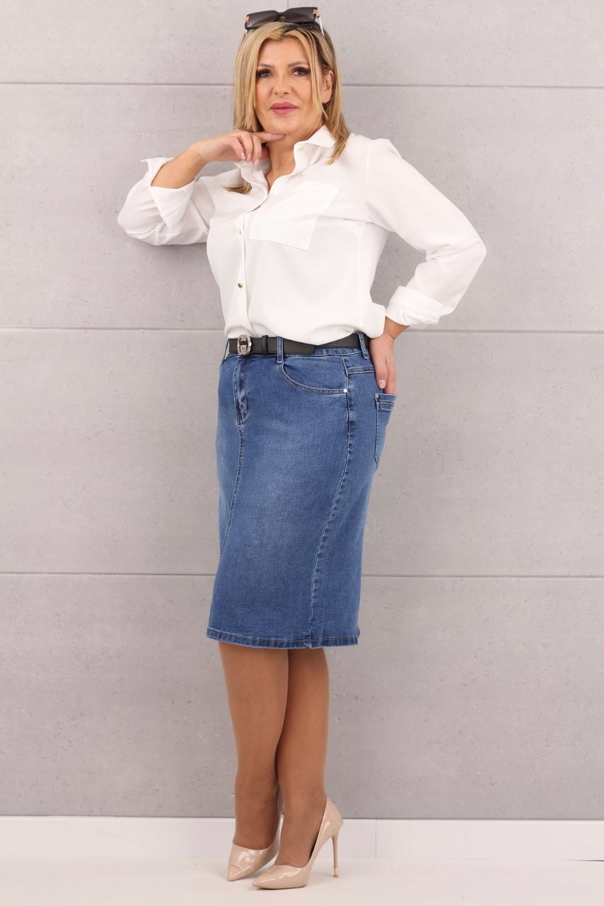 ДЖИНСОВА СПІДНИЦЯ ОЛІВЕЦЬ ВІЛЬНИЙ ПОЯС З РОЗРІЗКОЮ ВЕЛИКІ РОЗМІРИ 40-48
