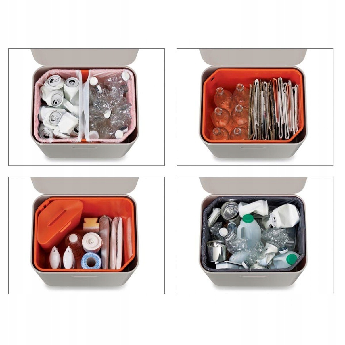 Две отдельные камеры с возможностью разделения вторсырья и вторичного сырья + дополнительный контейнер для органических отходов с крышкой - 4л