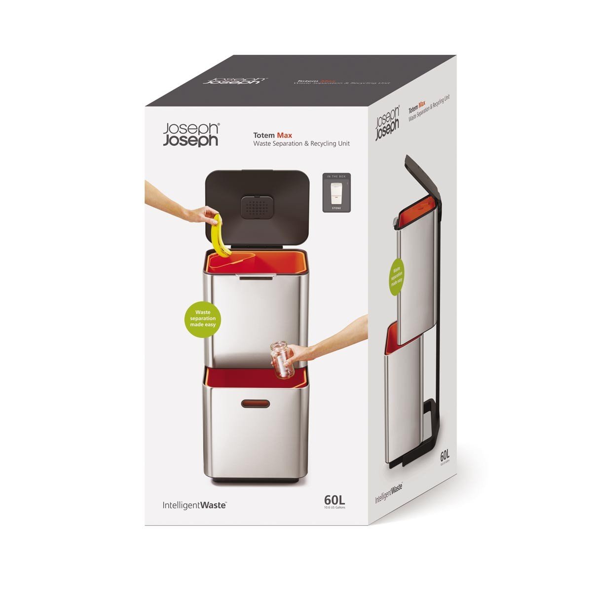 Joseph Joseph Totem Max, 60 литровый контейнер для мусора и вторсырья, нержавеющая сталь