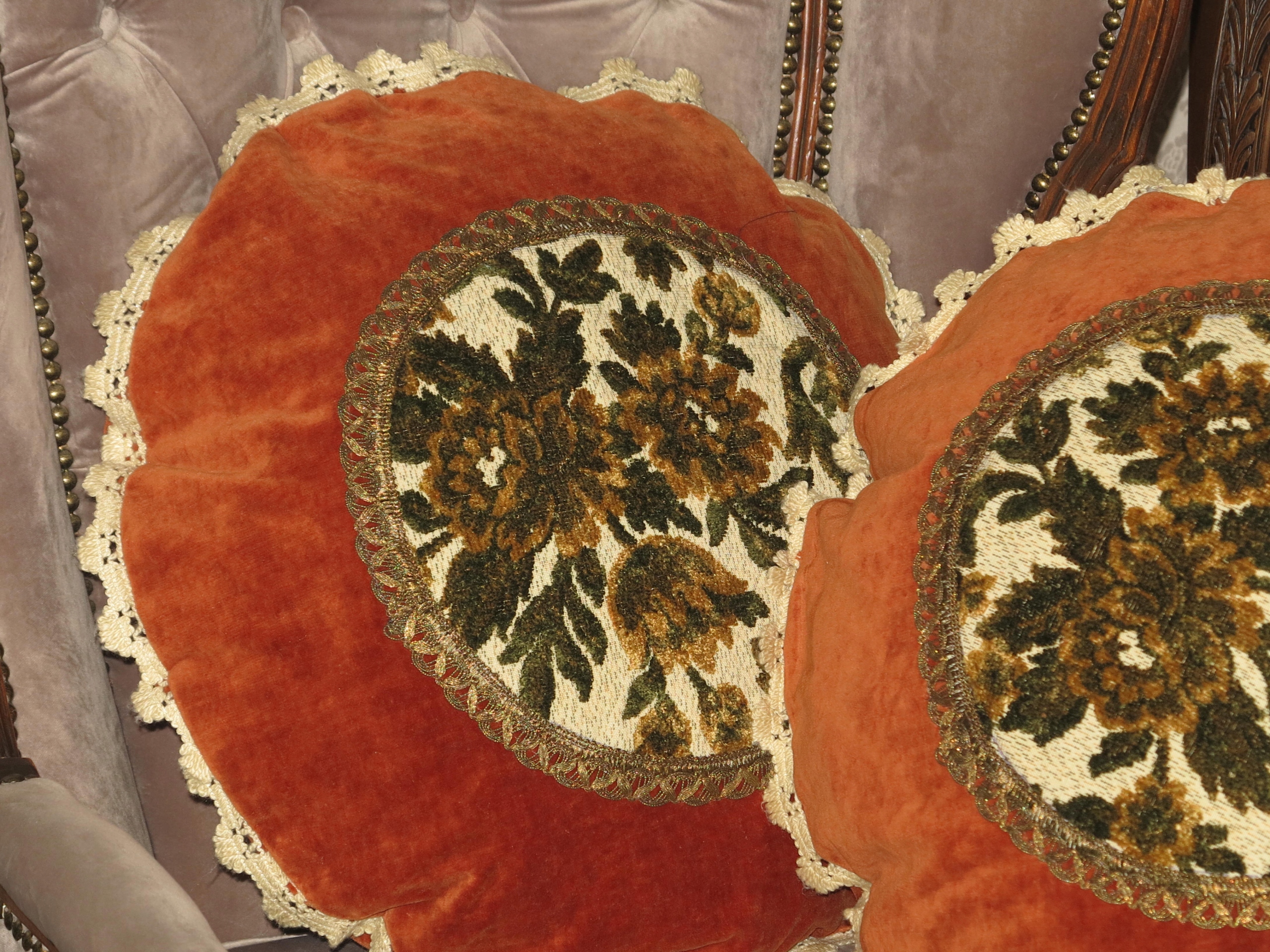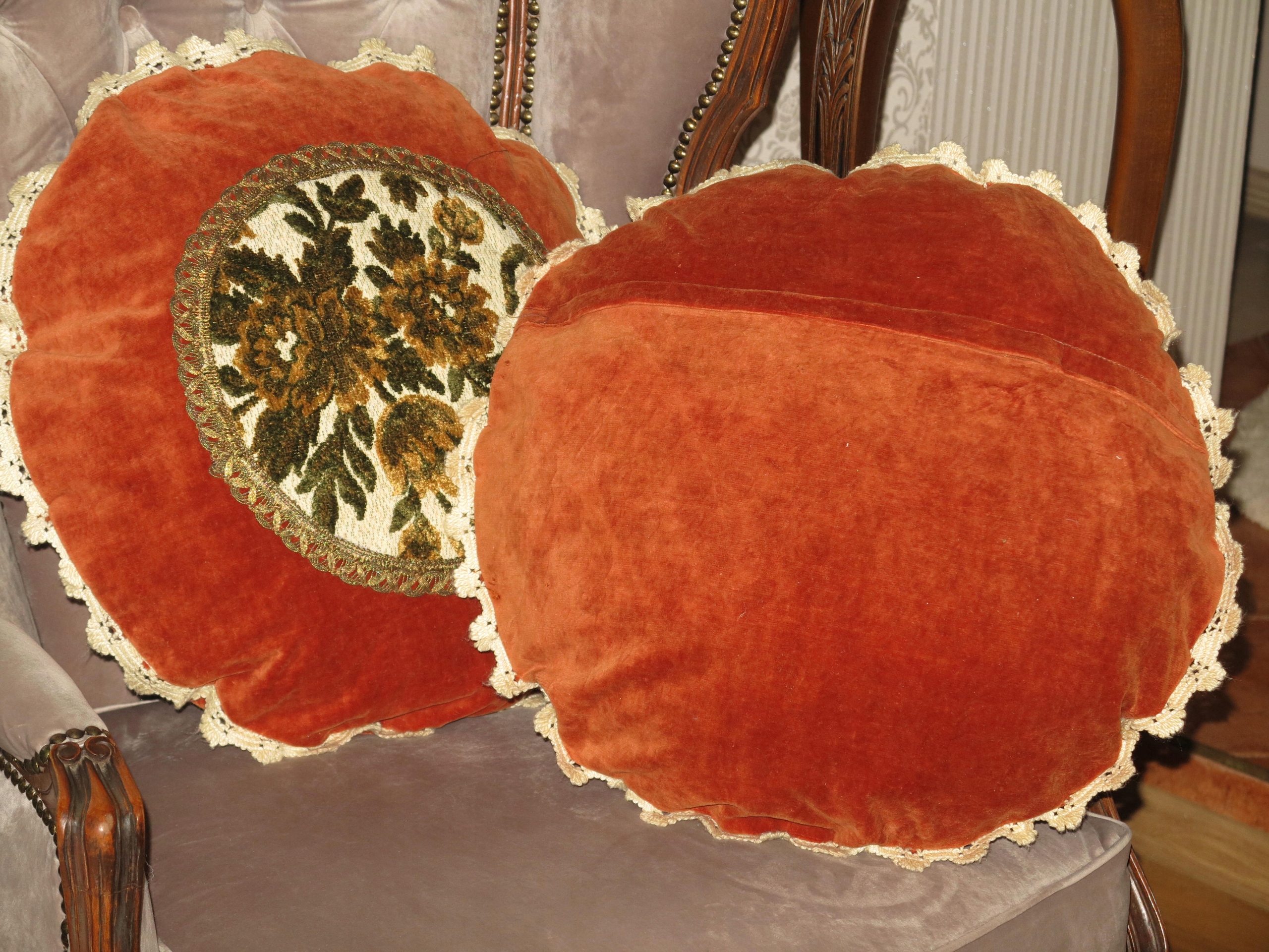 для знатока- уникальная красота, набор крупных стильных антикваров круглые подушки с начинкой. В более темном кирпичном цвете