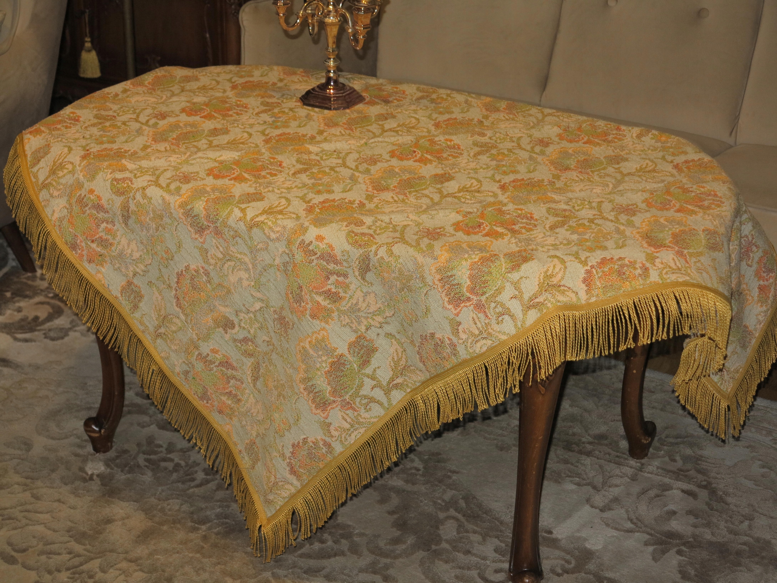 Размеры: 135/129 см (сам гобелин) + для около 7 см. Использовалась скатерть, в супер хорошем состоянии. Я рекомендую