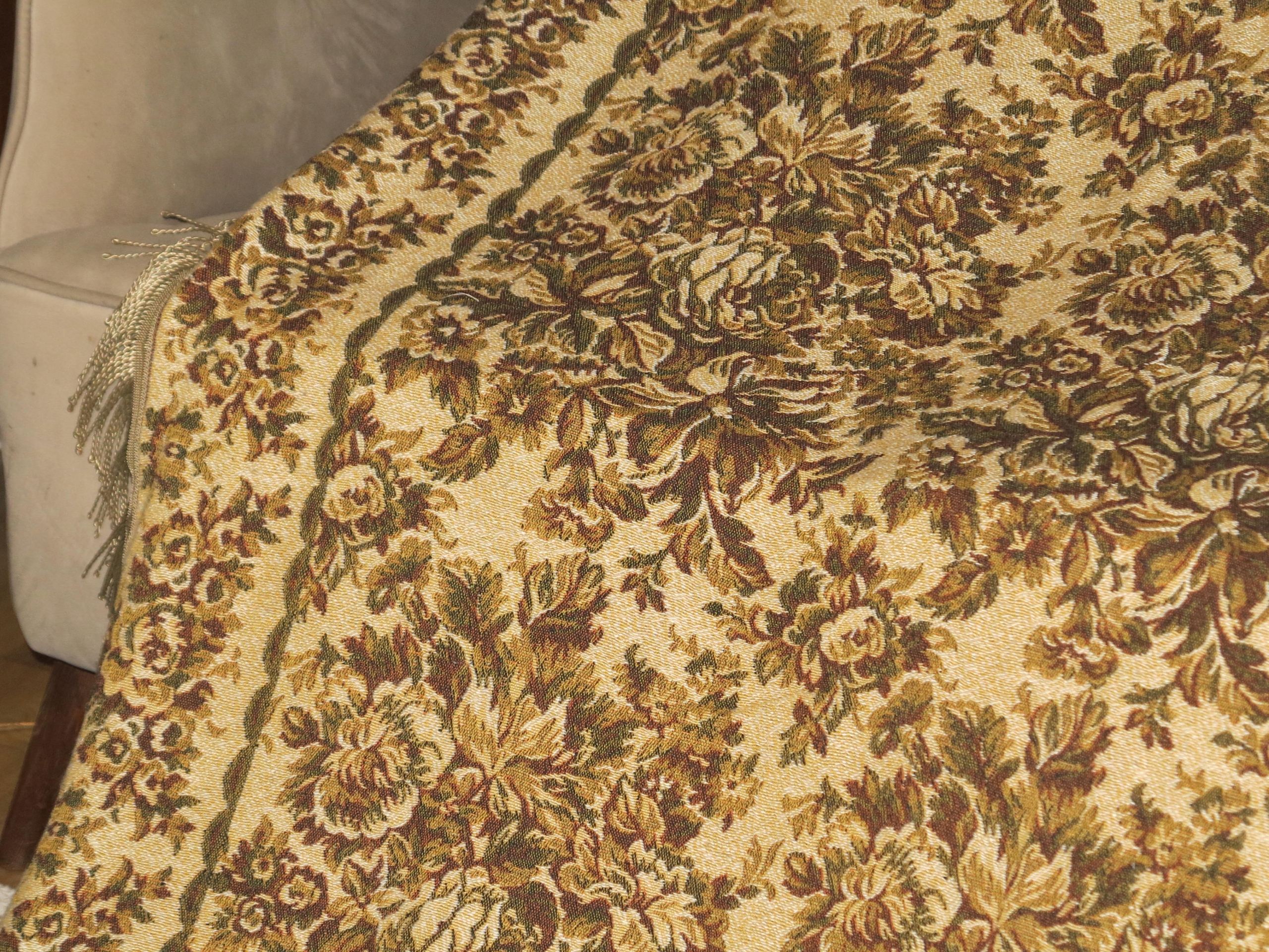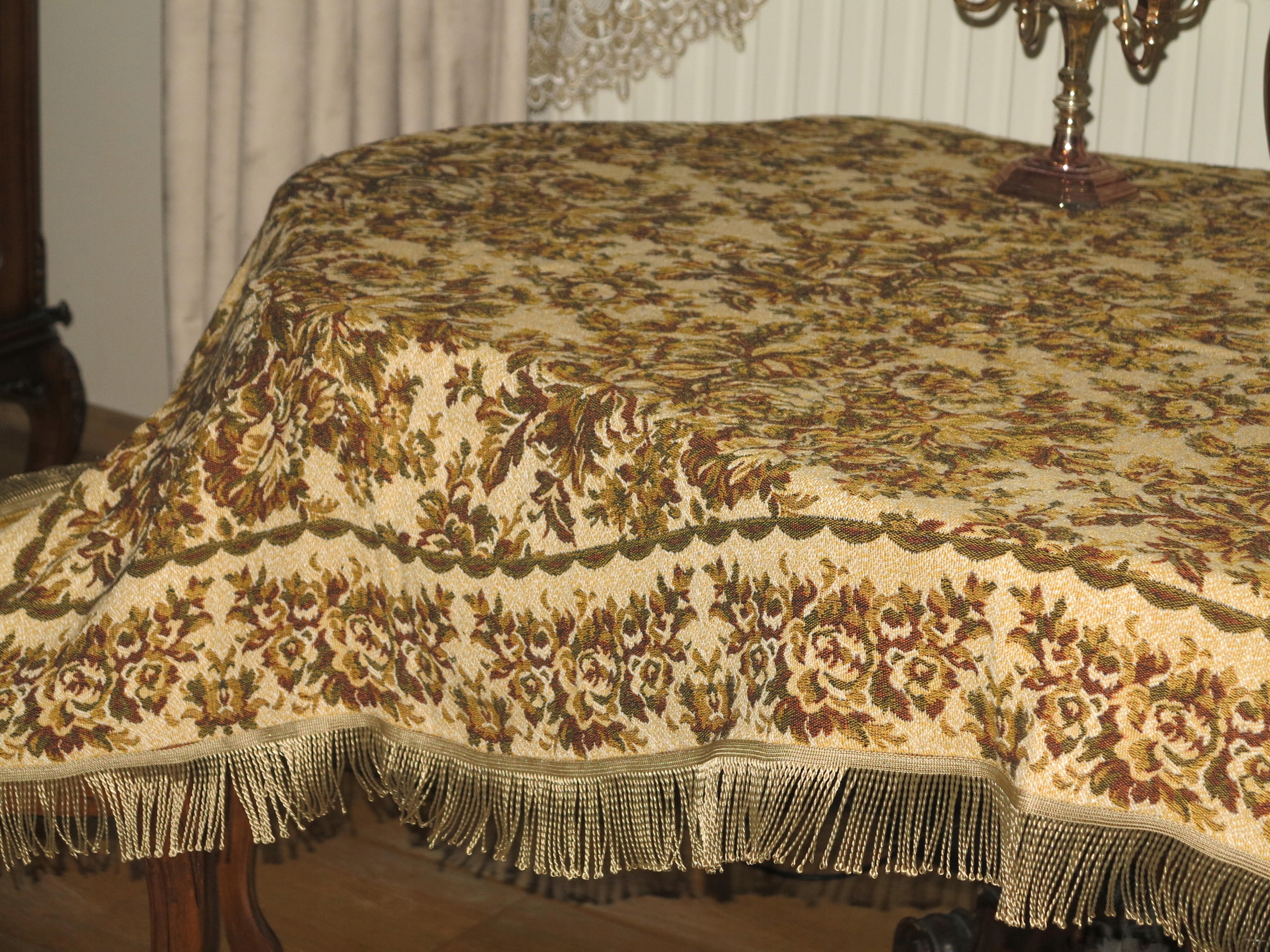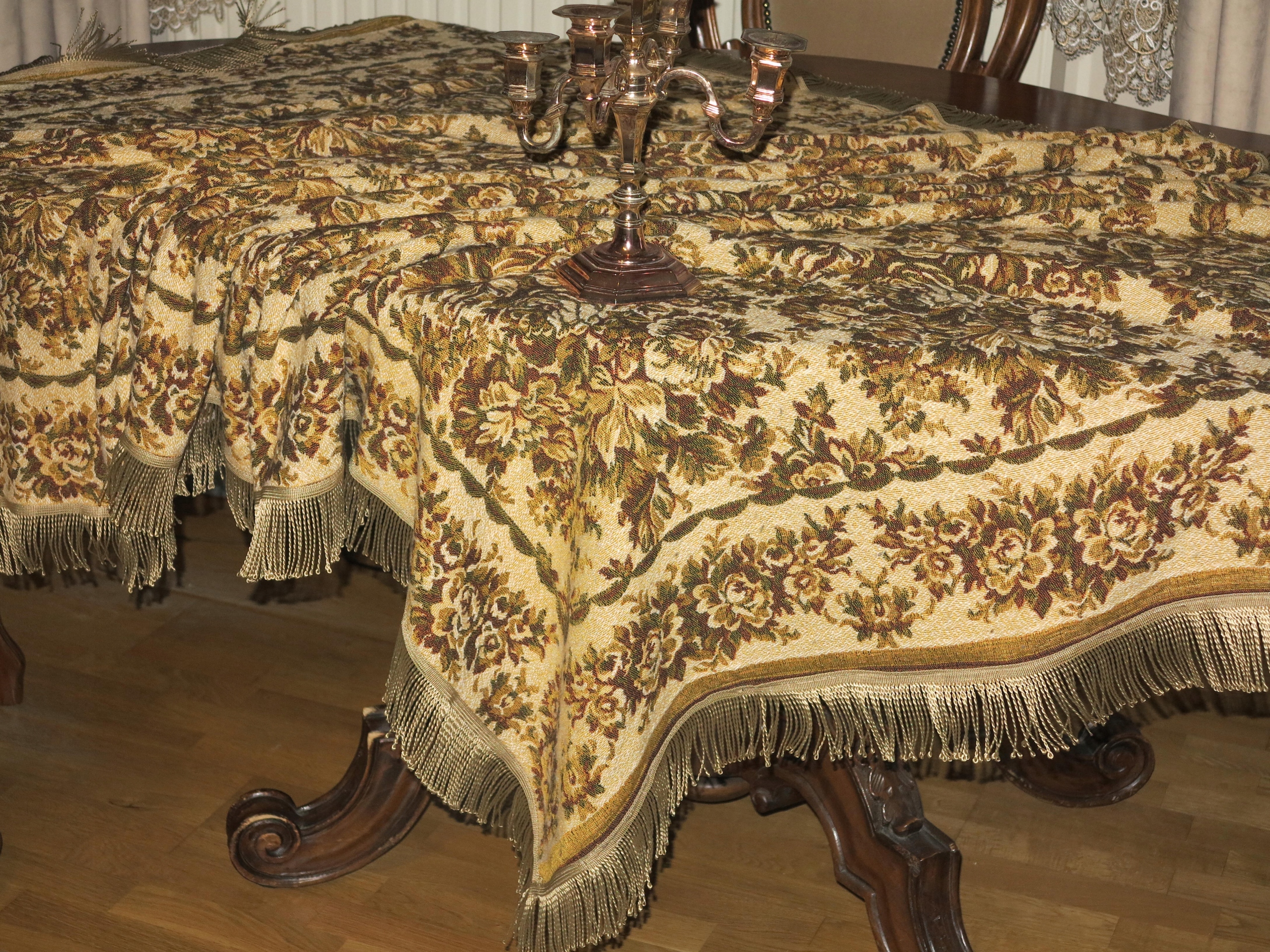 для знатока -красивой возрастной стильной большой скатерти или гобелена в букетах роз, в коричневых и зеленых цветах.