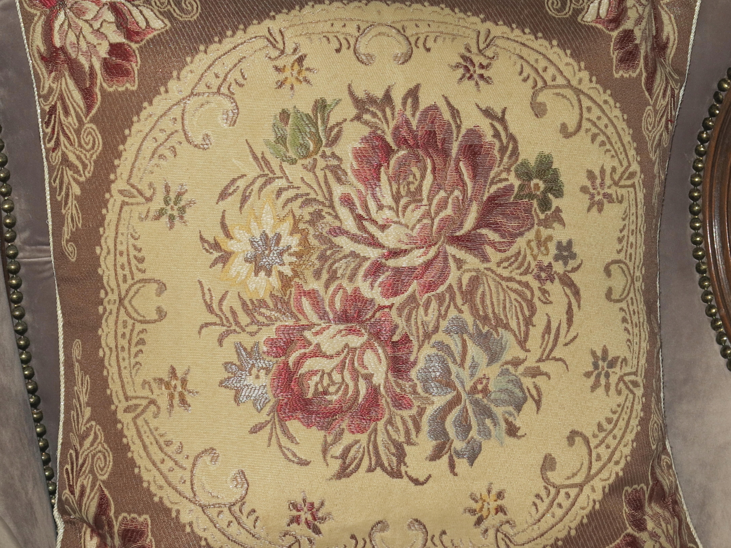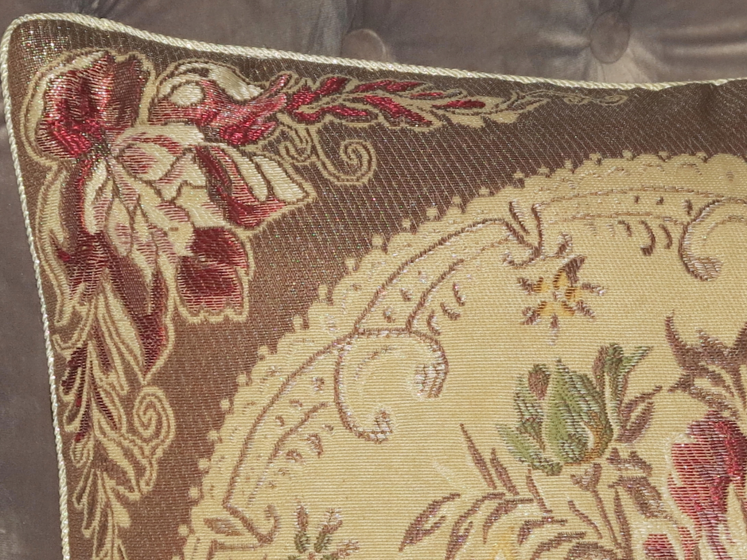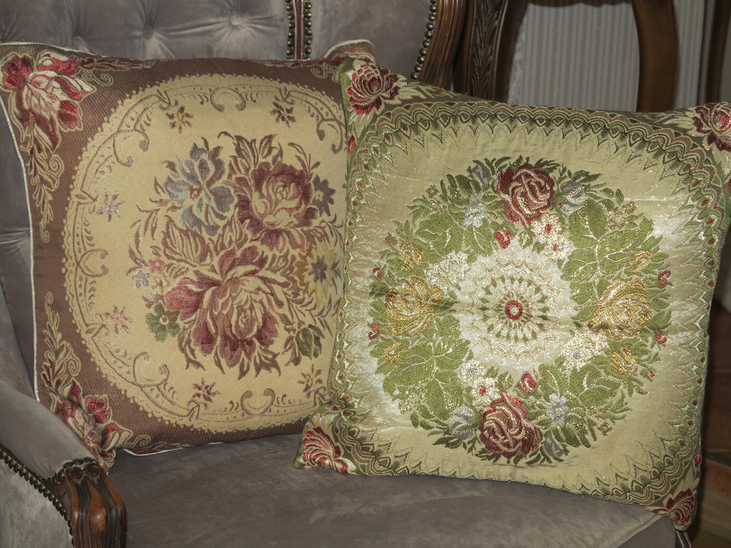 для антиквариата- чрезвычайно красивой большой Стильная бархатная подушка с гобеленом. Подушка с заполнением и пушистая начинка - пух с перьями