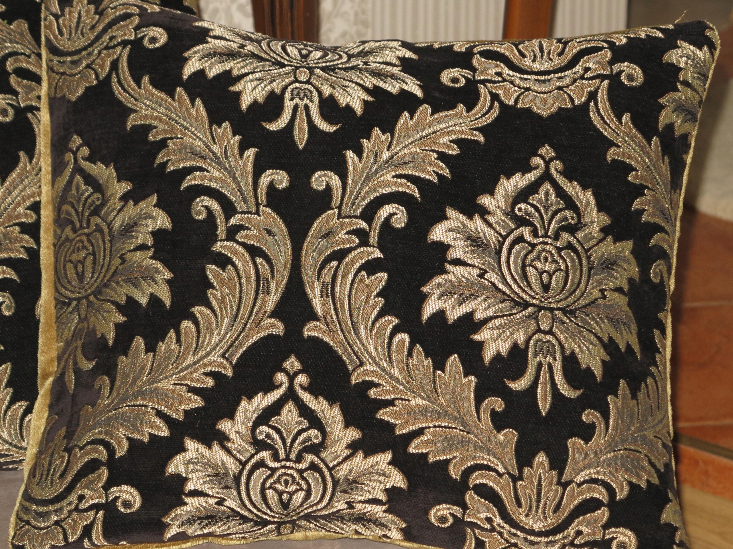for a connoisseur- a beautiful set of large, thick and very solid velvet pillowcases in black and old gold and a beautiful stylish acantine pattern