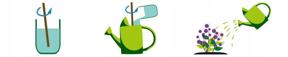 2️⃣ Вылейте разведенное удобрение и перемешайте, чтобы обе жидкости тщательно смешались.