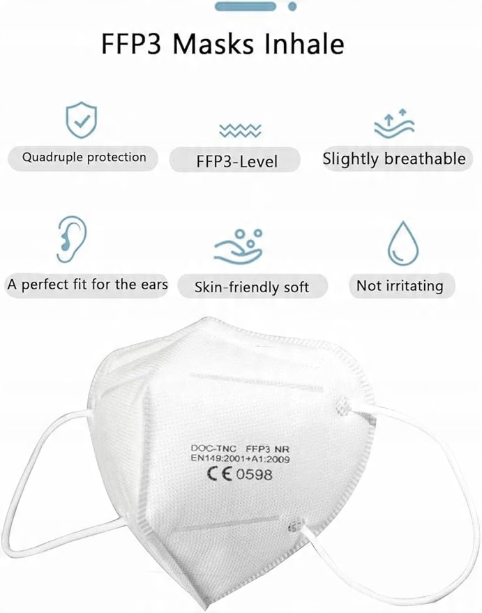- [Стандартный FFP3] самый высокий уровень фильтра в ЕС. Он фильтрует не менее 99% частиц диаметром 0,6 мкм. Поскольку эта маска не требует дополнительных клапанов, ее можно использовать в любом месте, защищая пользователя и среды!