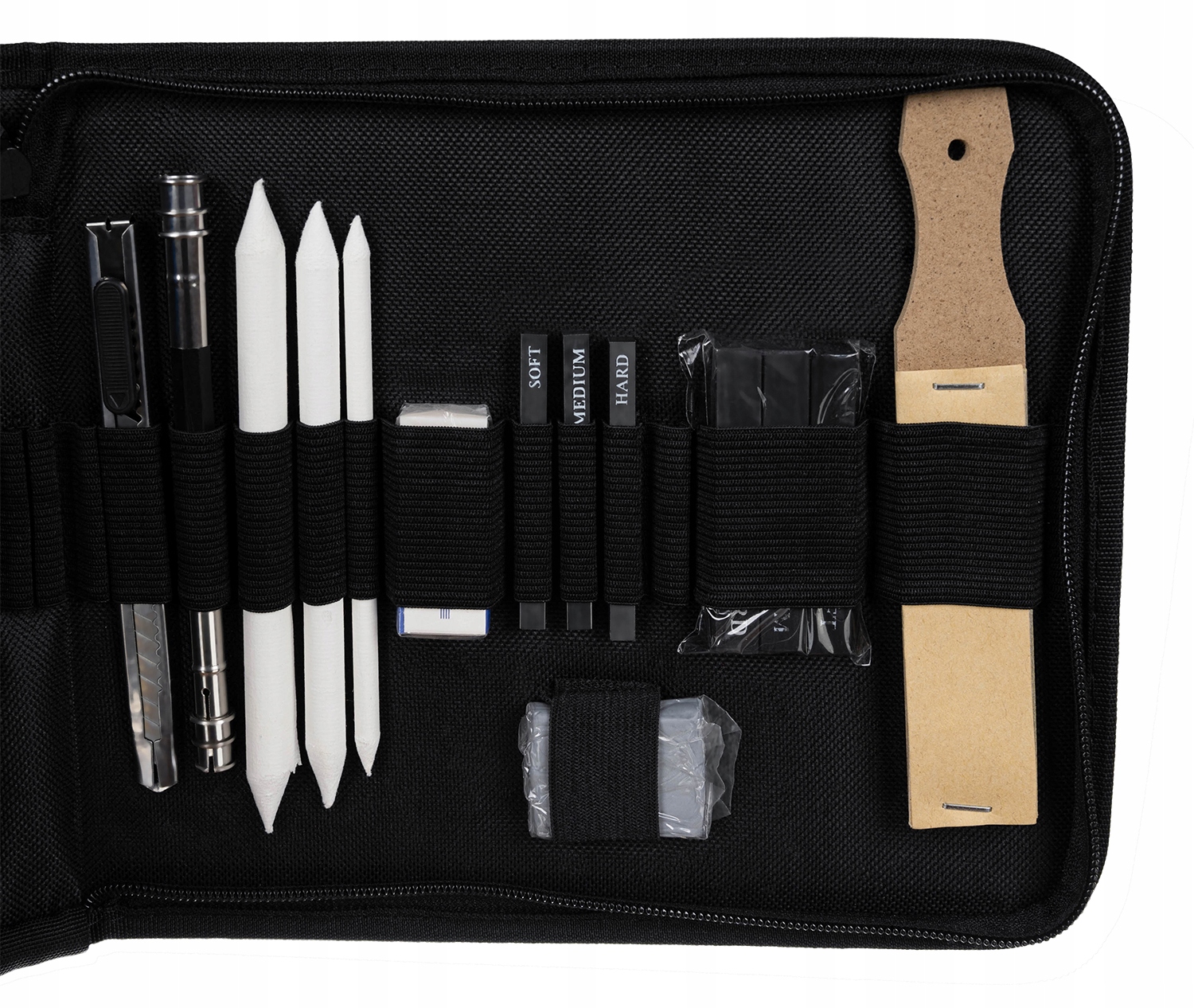 - 3 угольных карандаша (мягкий/средний/твердый)