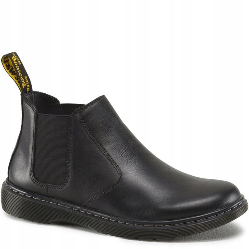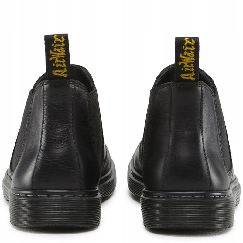 Оригинальные ботинки челси из коллекции обуви Dr. Док Мартенс. Строка #REVIVE. Изготовлен из натуральной лицевой кожи черного цвета. Надевать. Верх обуви украшен оригинальной строчкой. Две широкие эластичные ленты, вшитые по бокам верха, облегчают надевание. Интерьер выполнен по технологии SoftWair — системе внутренних вставок, запатентованной Dr. Martens, которая повышает комфорт при ходьбе за счет вентиляции внутренней части обуви и поглощения ударов. В этой модели подошва характерной формы, пришитая к верху обуви типичной для Martens серой нитью.