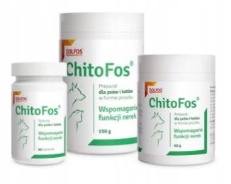 ХитоФос — препарат для собак и кошек, ингредиенты которого поддерживают функцию почек. Хитозан – строительный компонент морских ракообразных, выводит из организма вредные вещества: уремические токсины. Карбонат кальция связывает фосфор, образуя нерастворимые фосфатные соли, ограничивая тем самым его избыток в организме. Добавление витамина D3 восполняет дефицит, возникающий вследствие заболеваний почек.