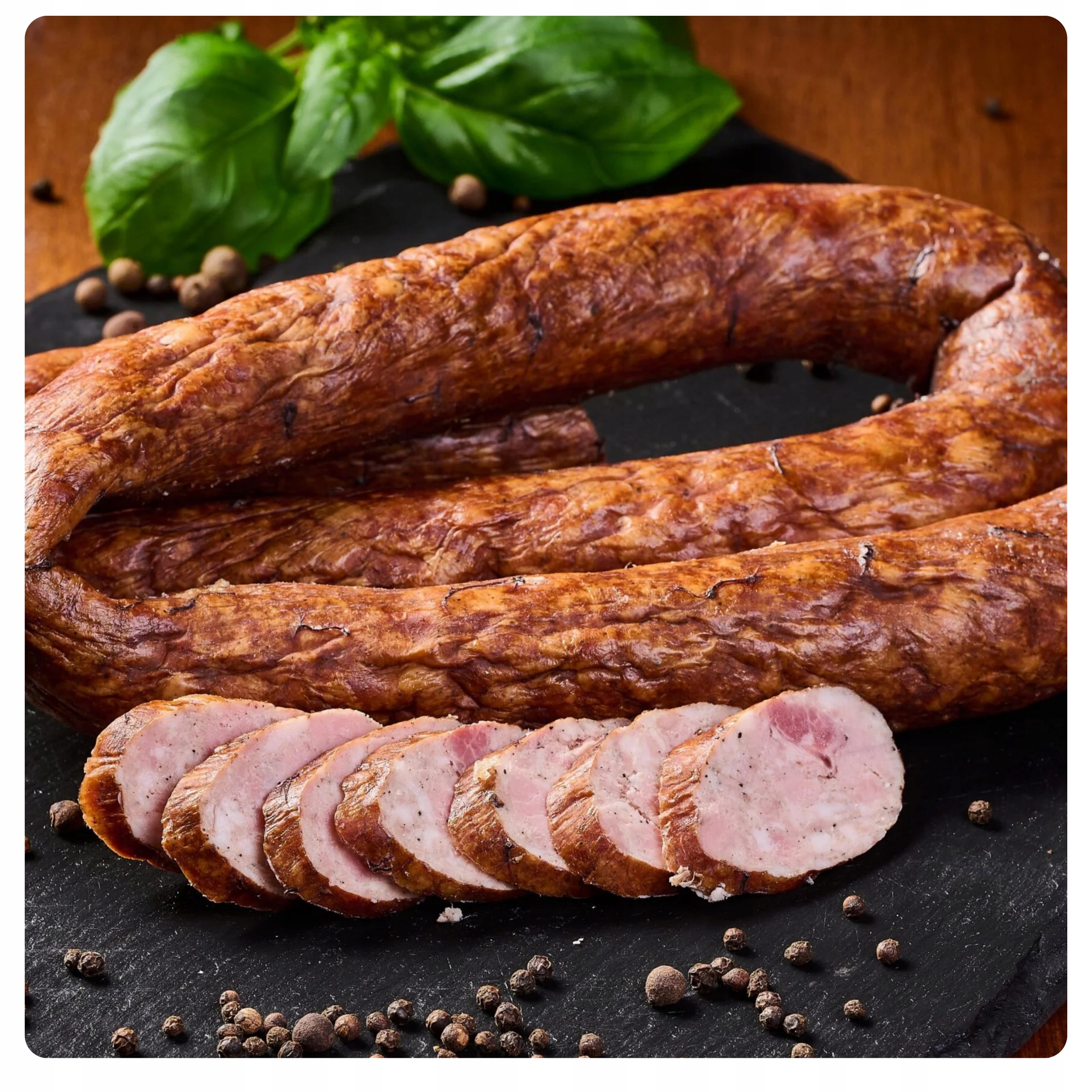 - Ингредиенты: свинина, бекон, отверждение соли, сахар, натуральные специи (черный перец, маджорам, чеснок)