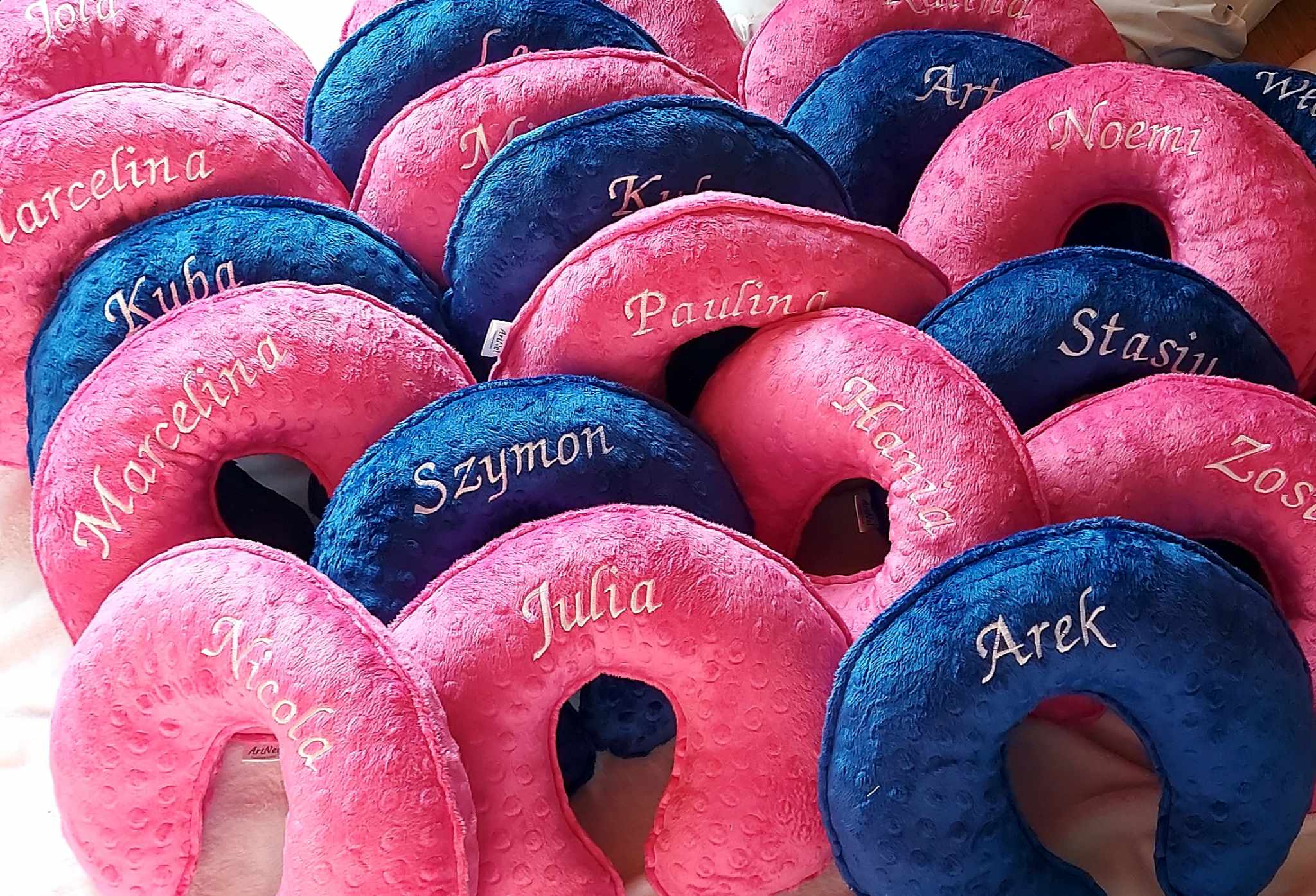 Подушка дорожная с вышитым именем.