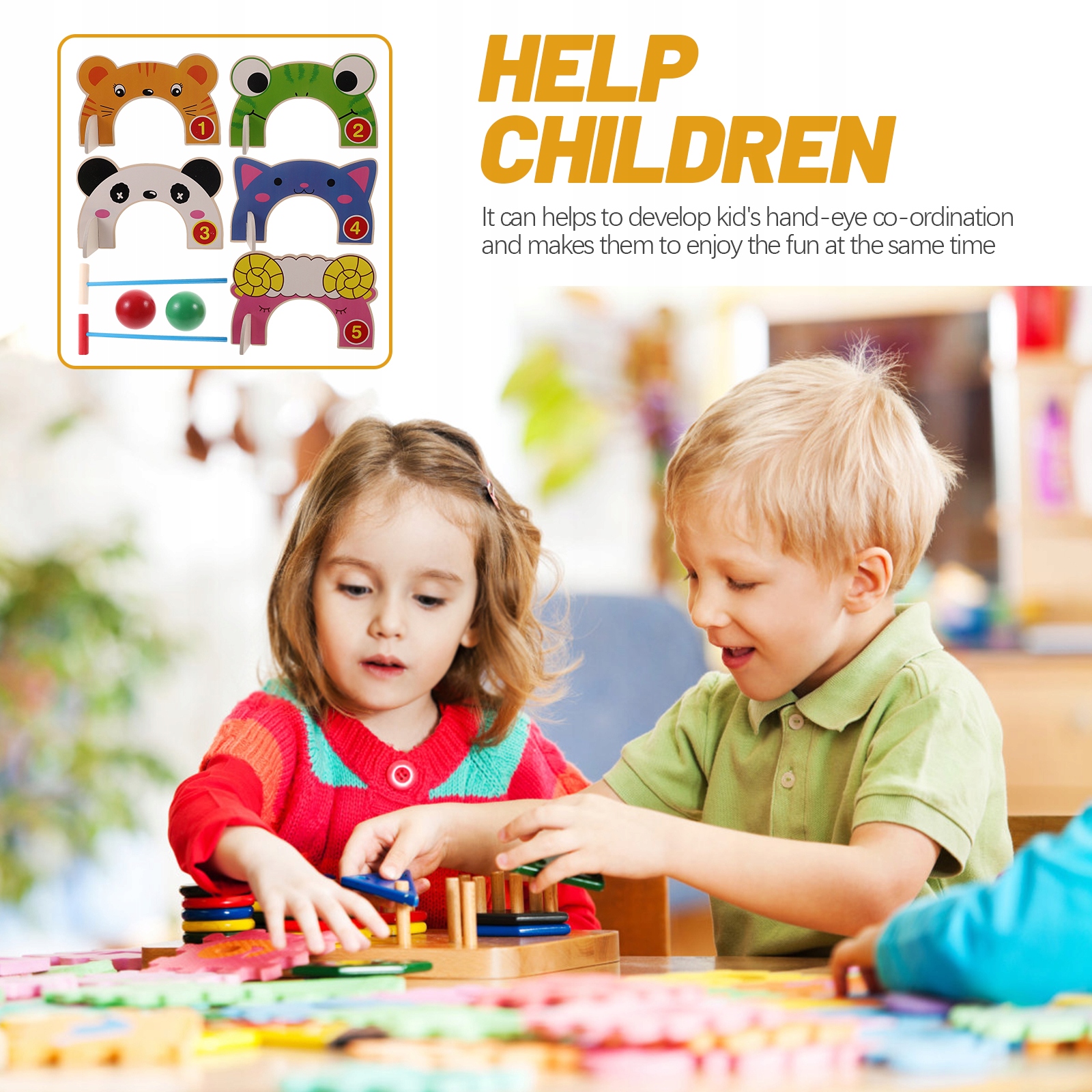 ✅ Используя мультяшные животные в качестве основной темы, набор для крокета может привлечь внимание детей.