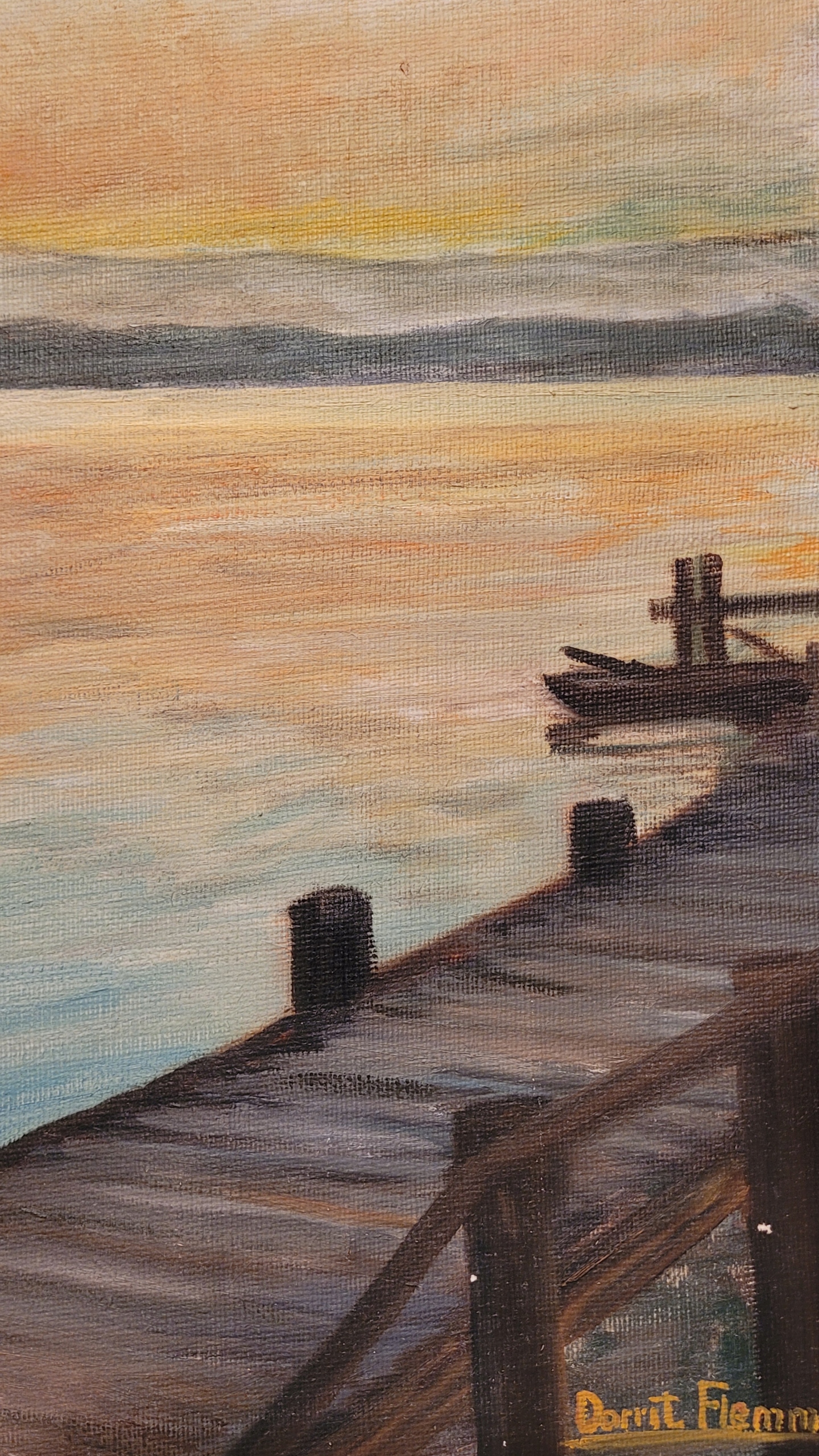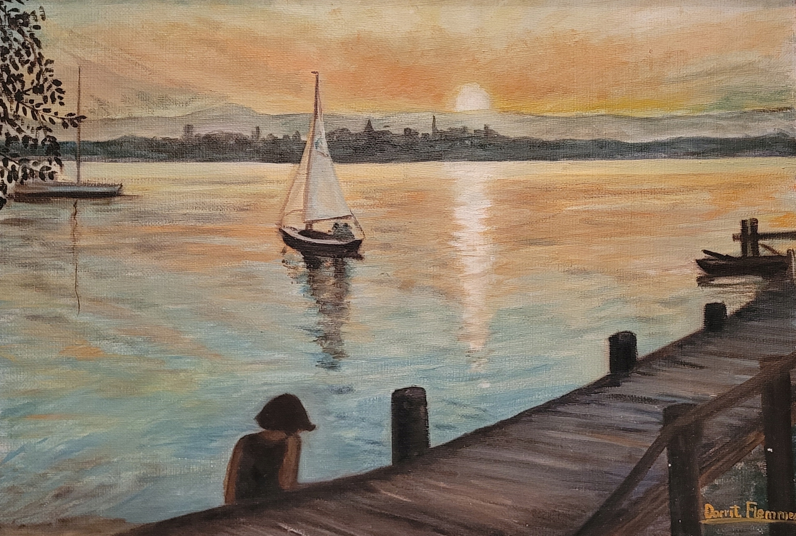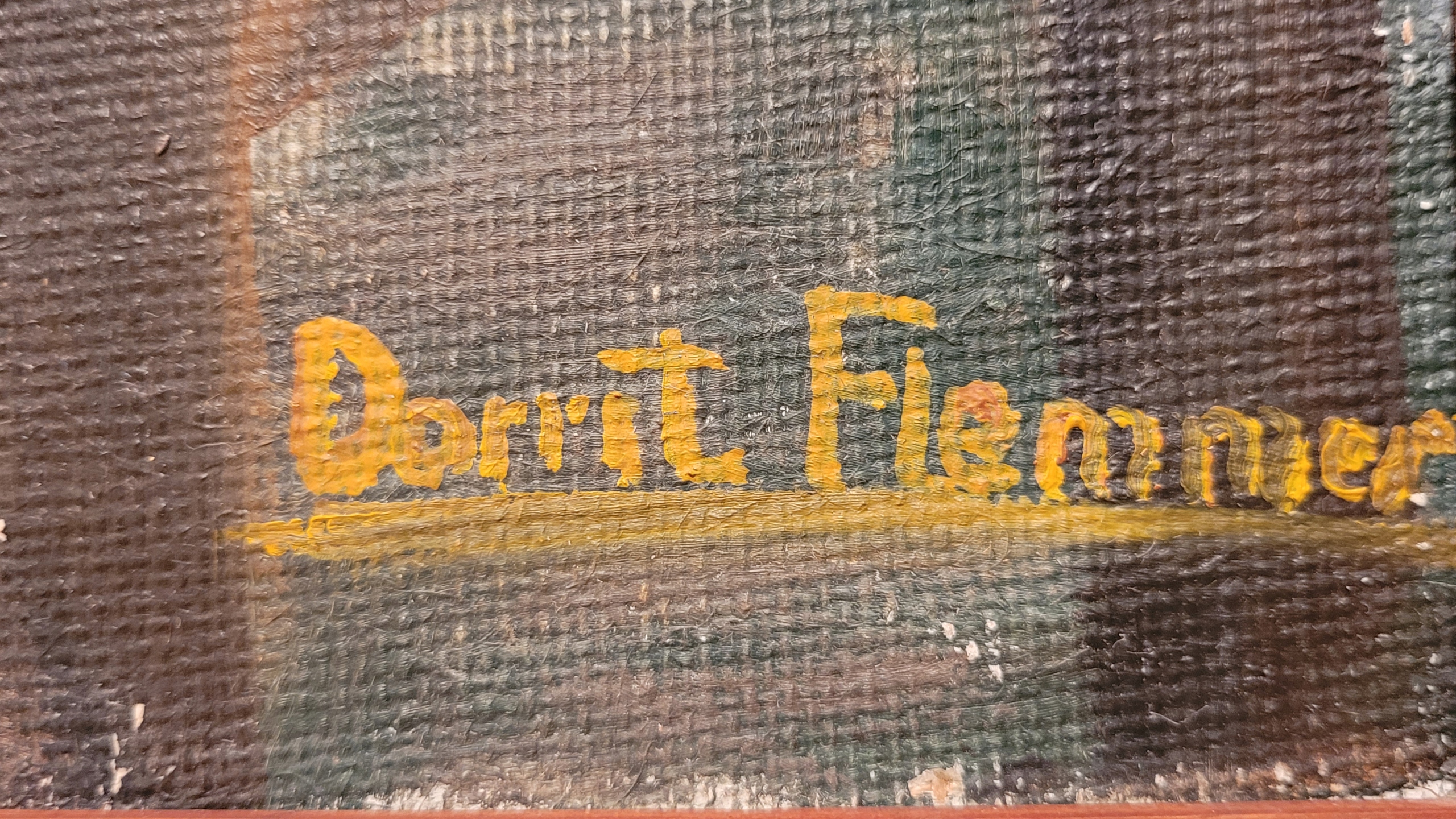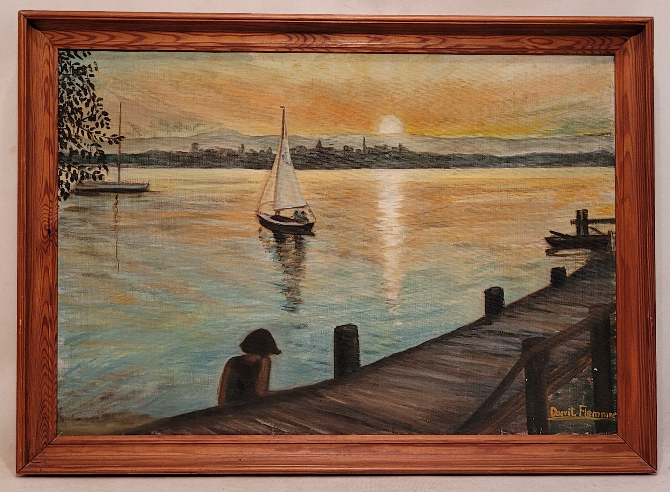 Доррит Флеммер - «Пейзаж с озером», старая нефтяная картина.
