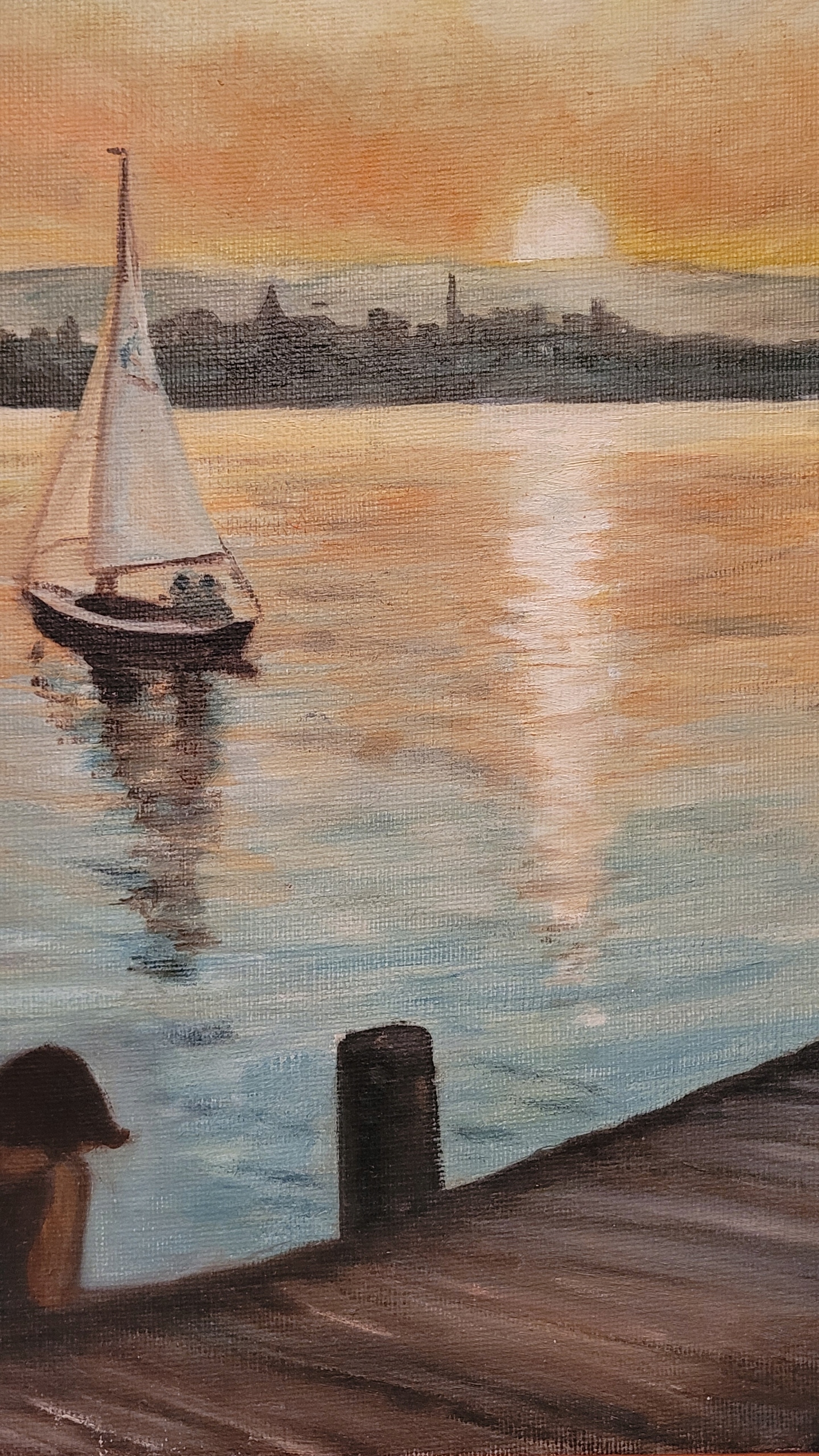 Объект продажи - красивая старая нефтяная картина "Лейндшафт озера".