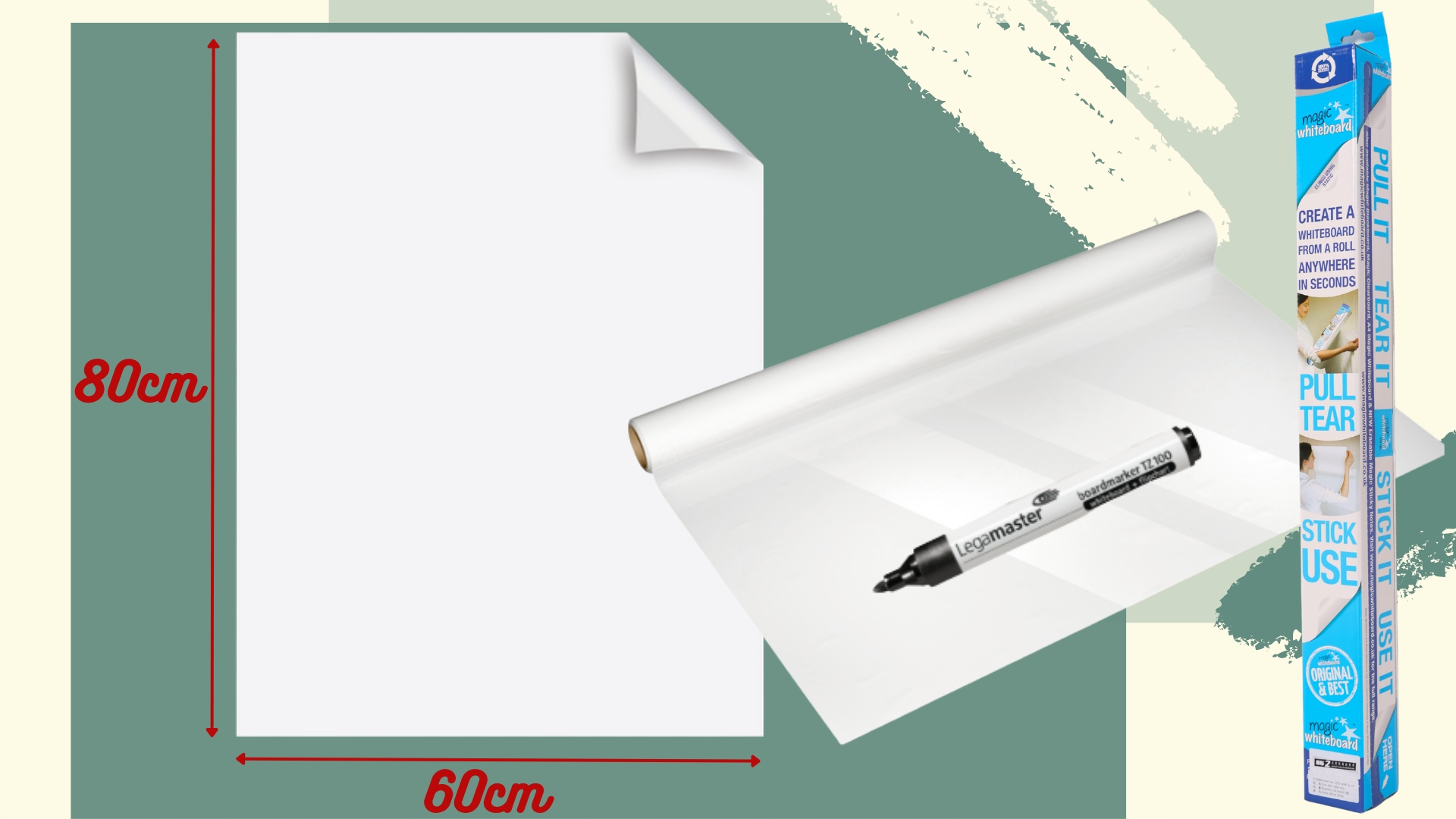 - Размеры и модульность: Размер каждого листа составляет 60x80 см, что обеспечивает большую поверхность для письма. Вам нужно больше места? Просто приклейте два листа рядом друг с другом!